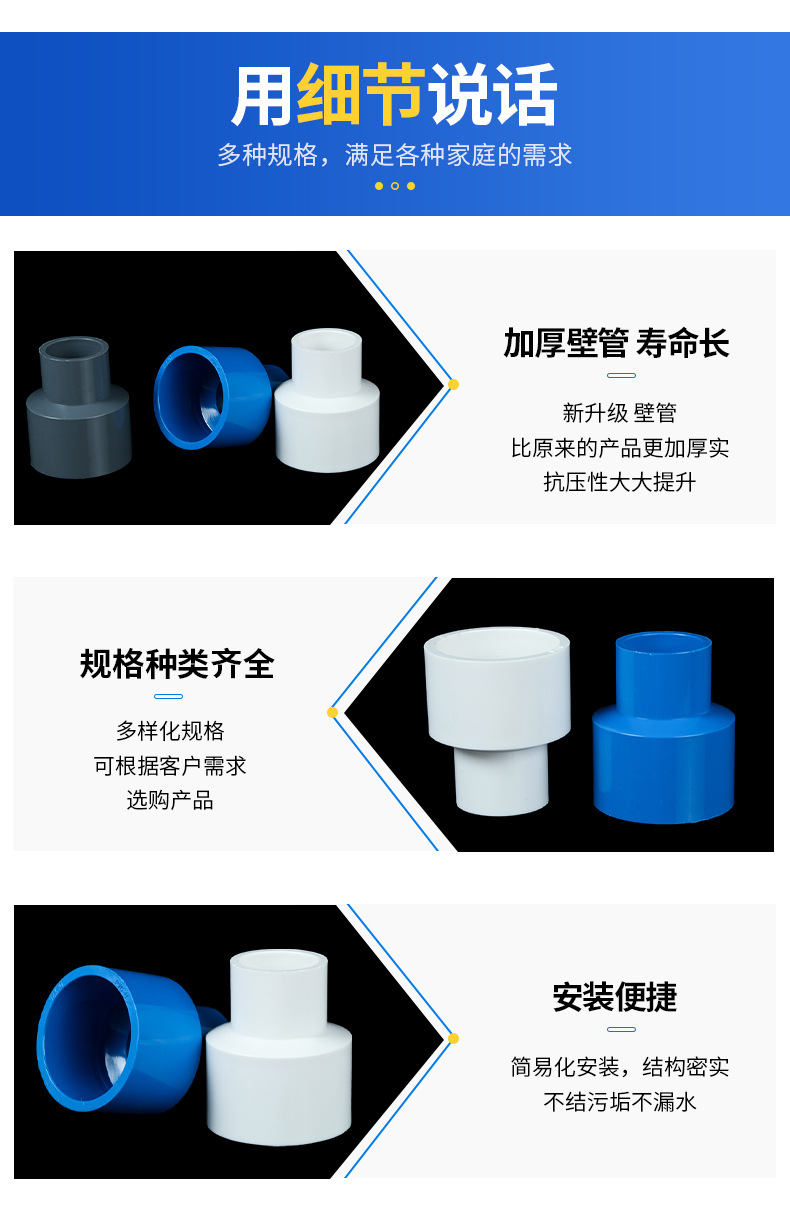 包装清单:1钰舜 PVC变径接头 大小头变径接头异径直接直通管件 加厚塑料给水管