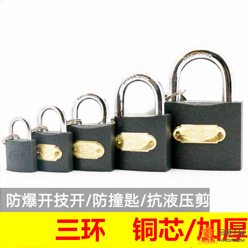 三环挂锁 柜仓库柜门锁头 房门长梁厚版铁挂锁