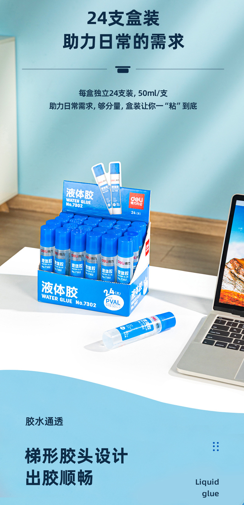 商品名称:得力 deli 文具7302胶水 会计用液体胶 儿童用手工胶透明胶