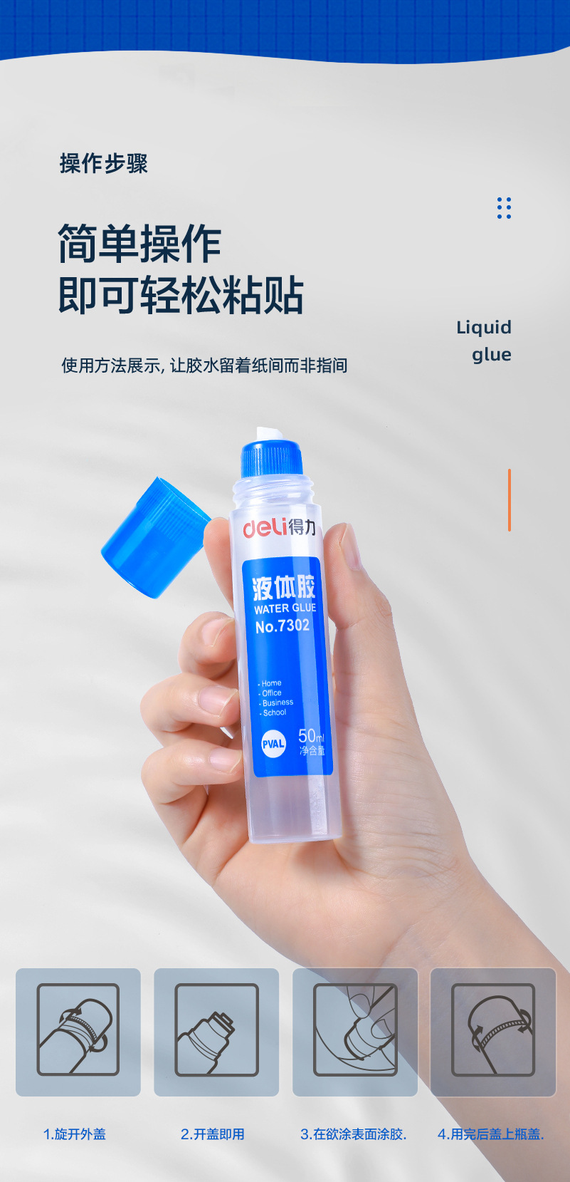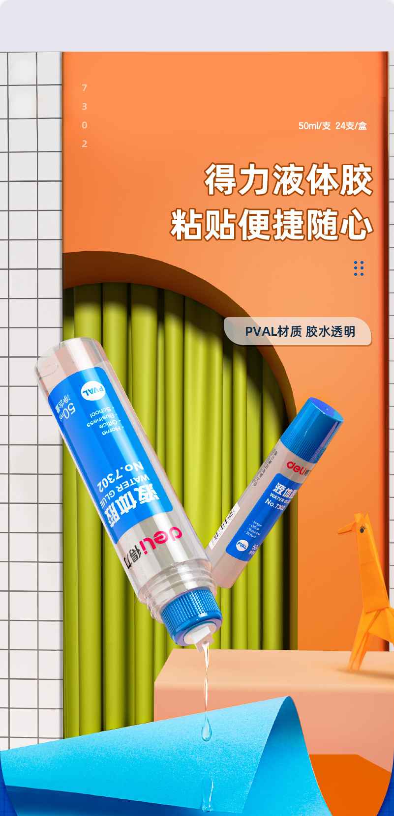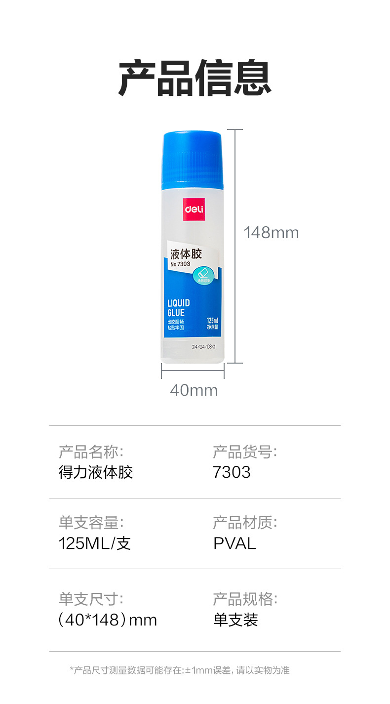 包装清单:1得力 deli 文具7302胶水 会计用液体胶 儿童用手工胶透明胶