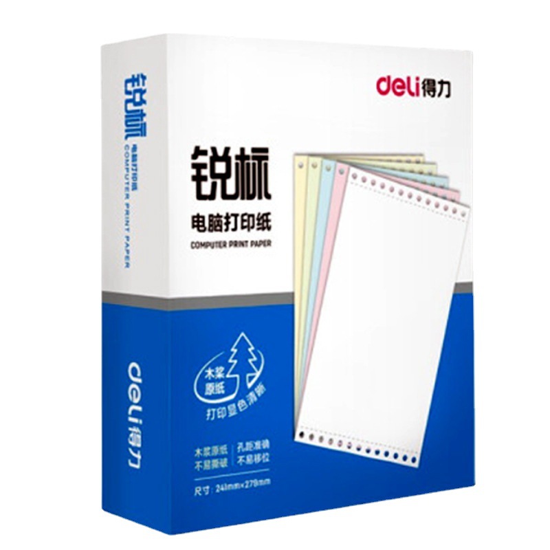 得力241-4(1/2等分)彩色电脑打印纸 送货单锐标 撕边600页