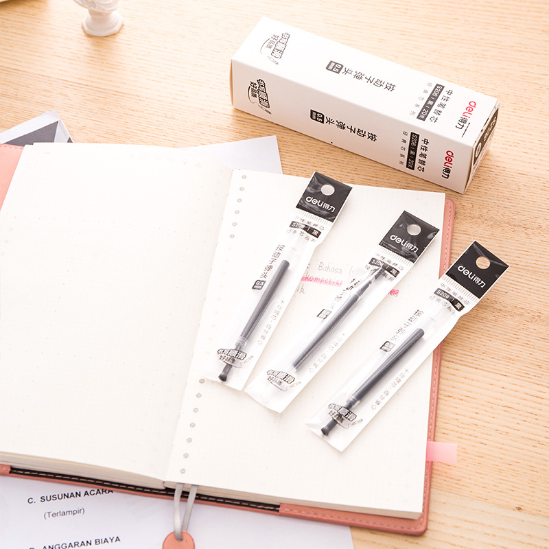 得力 deli 黑色笔芯 弹簧头中性笔替芯0.5