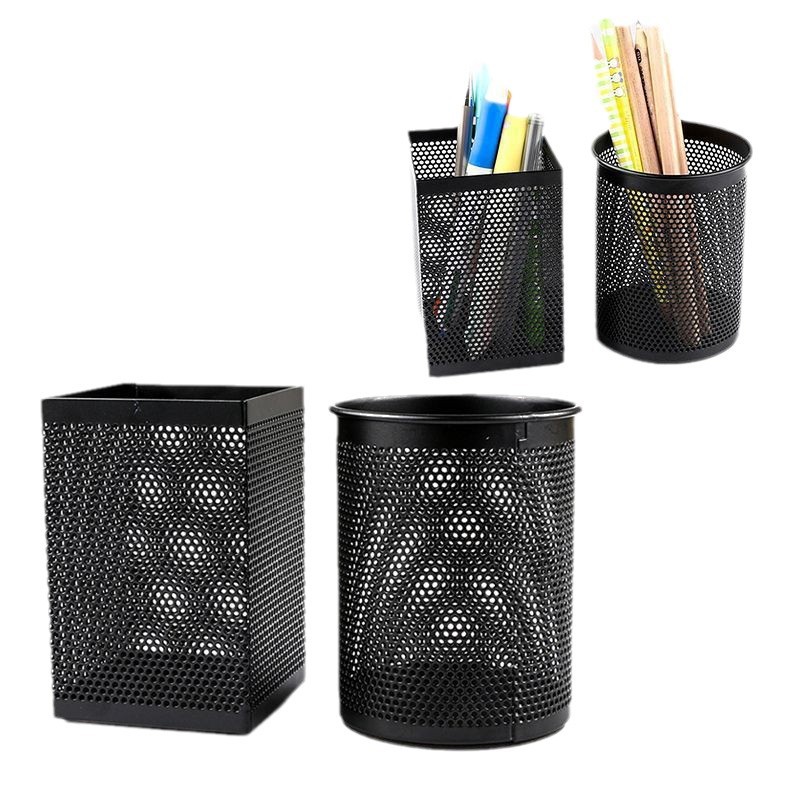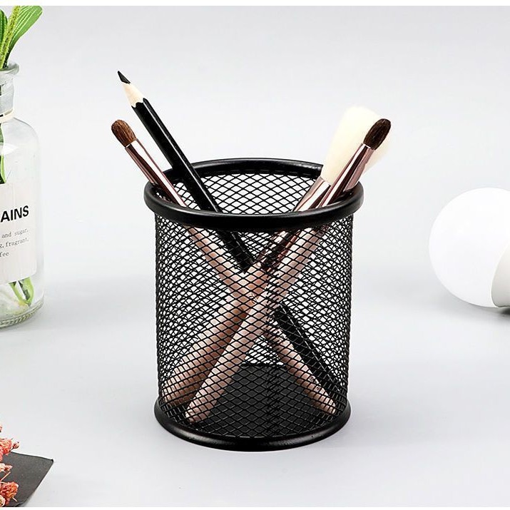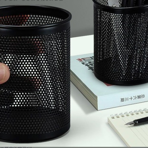 得力 deli 笔筒 圆形网格金属 笔筒收纳 学生办公桌面 多功能创意简约