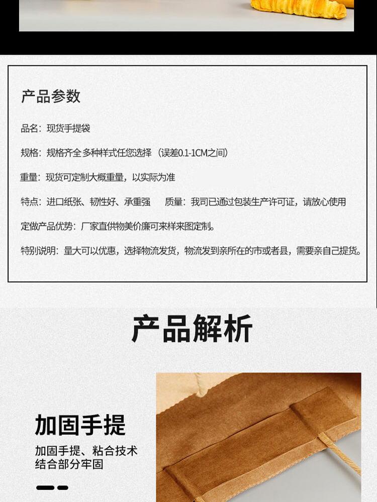 包装清单:1合恒工品 牛皮纸袋 手提纸袋子 外卖打包袋服装购物纸袋