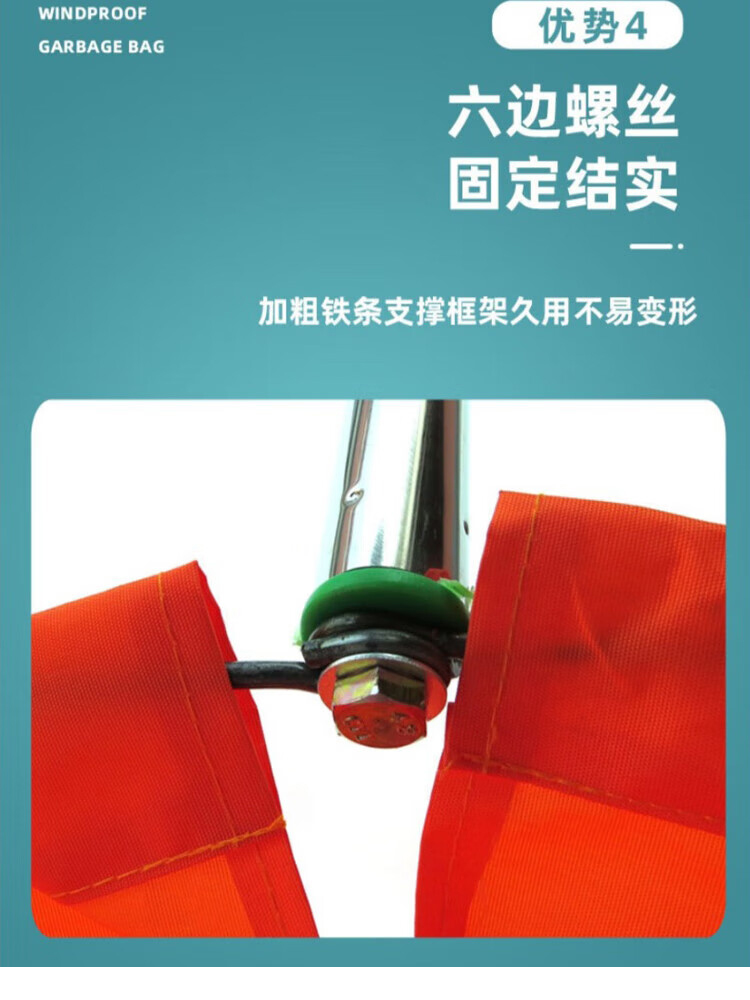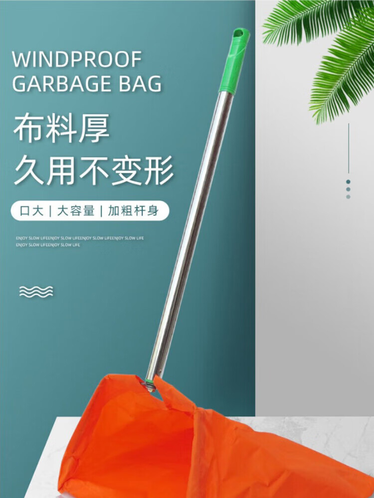 包装清单:1雷璟 布袋簸箕 户外环卫防风垃圾袋加厚加粗不锈钢柄垃圾袋垃圾铲保洁工具
