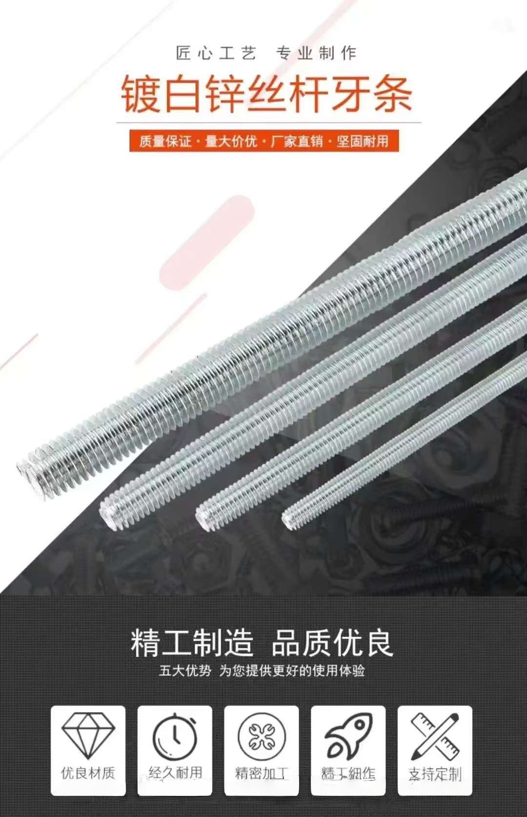 包装清单:1冀螺 镀锌丝杆 不锈钢丝杆螺丝螺纹杆