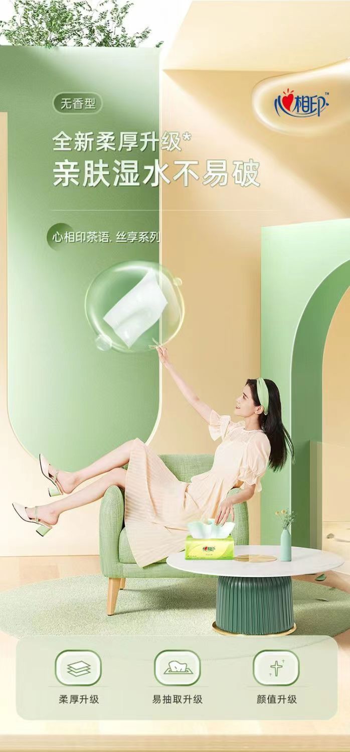 包装清单:1心相印 纸巾茶语3层120抽10包提 大包抽纸家庭实惠装面巾纸