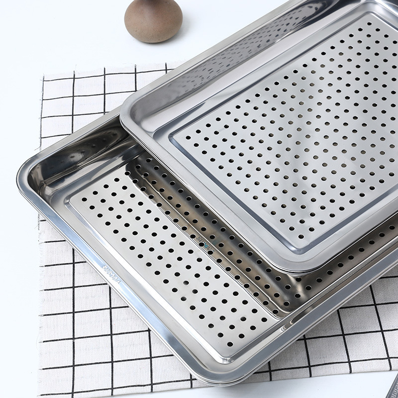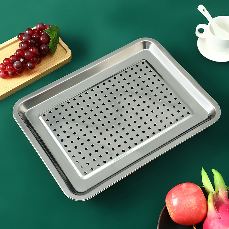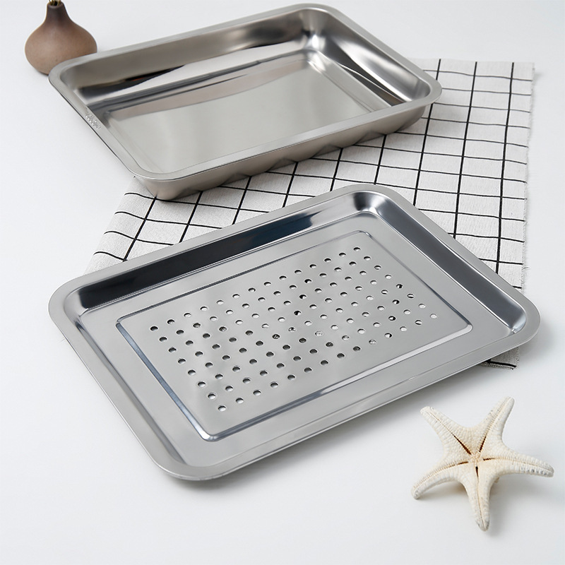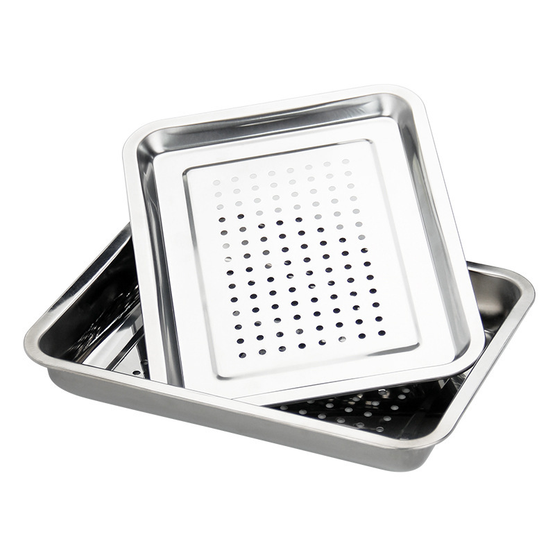 合恒工品不锈钢茶盘冲孔过滤储水盘沥水盘不锈钢方盘托盘烧烤盘
