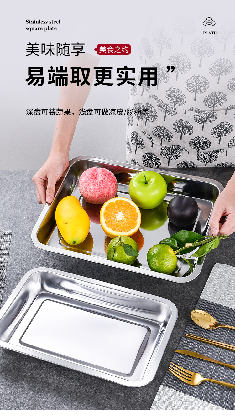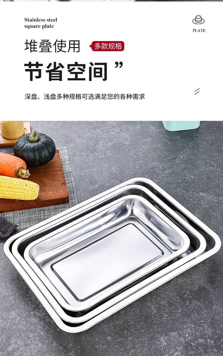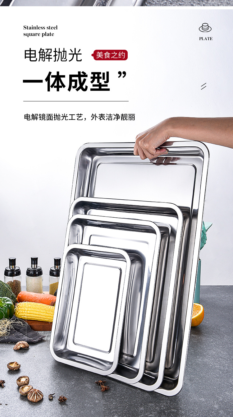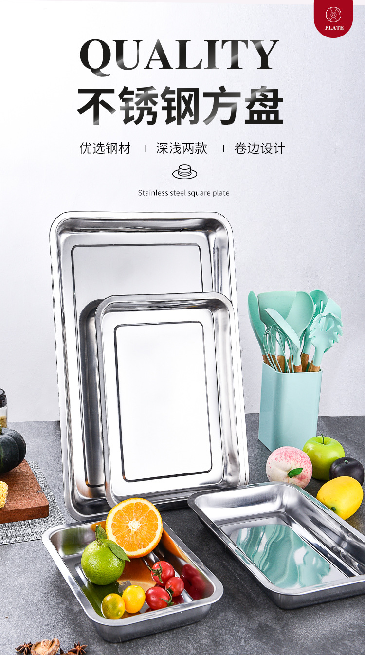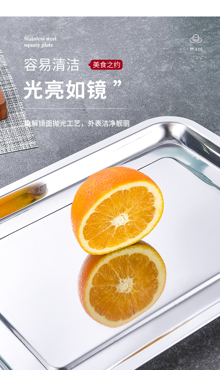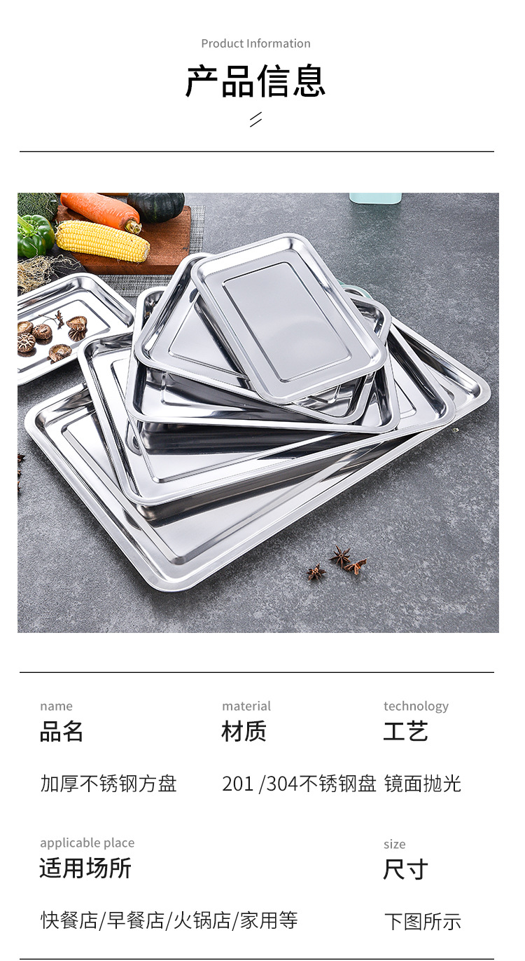 包装清单:1创发 不锈钢方盘 蒸柜蒸车托盘 点菜柜备菜盘 烧烤店烤鱼小龙虾盘方形