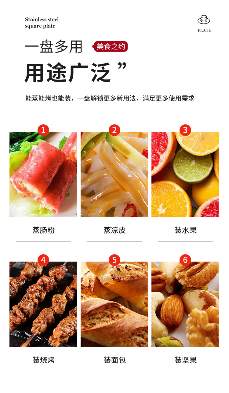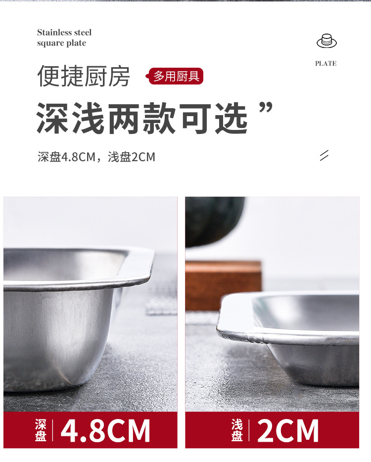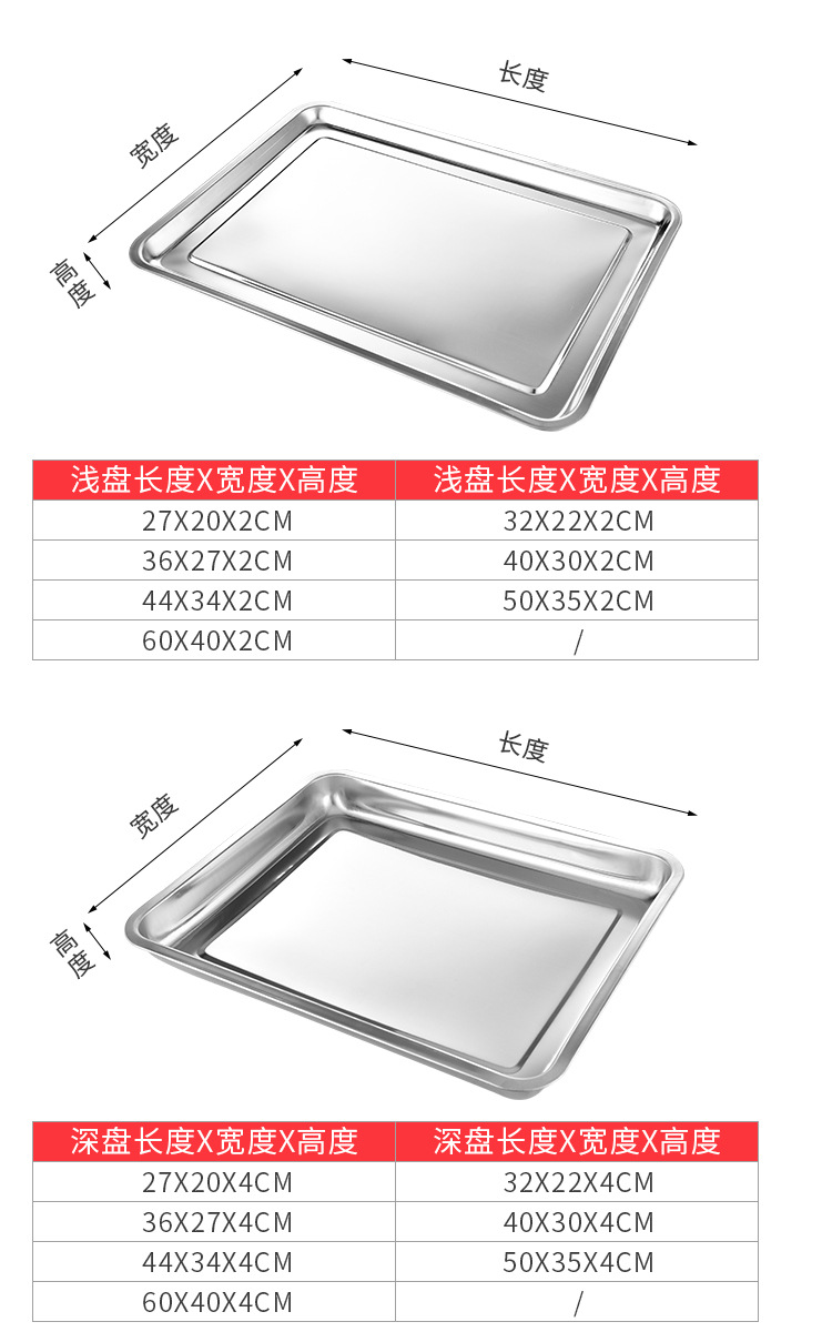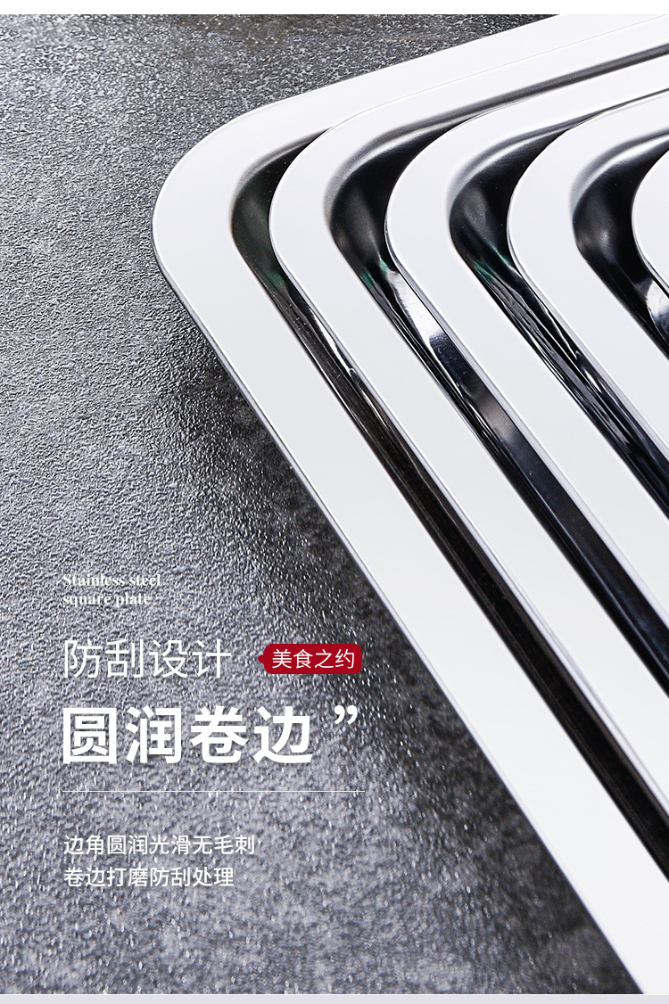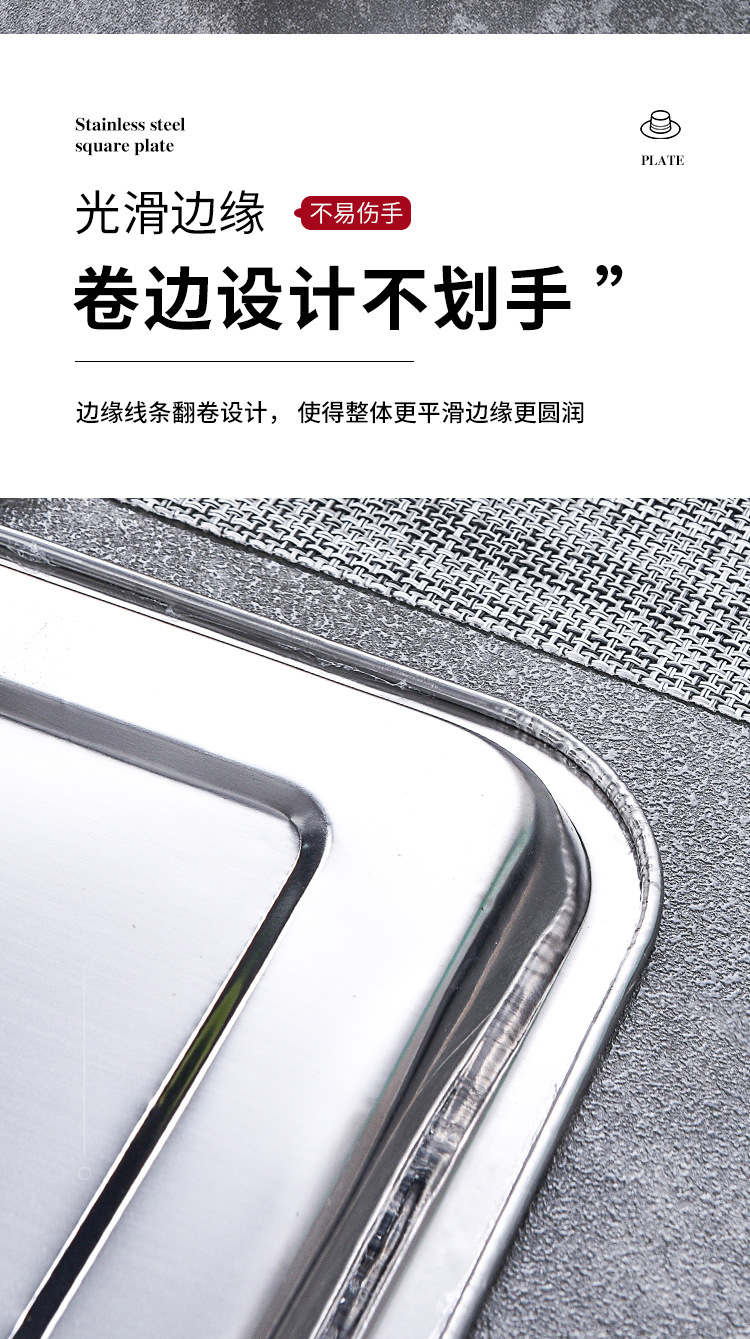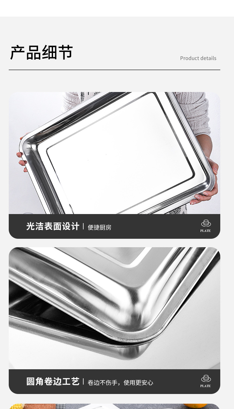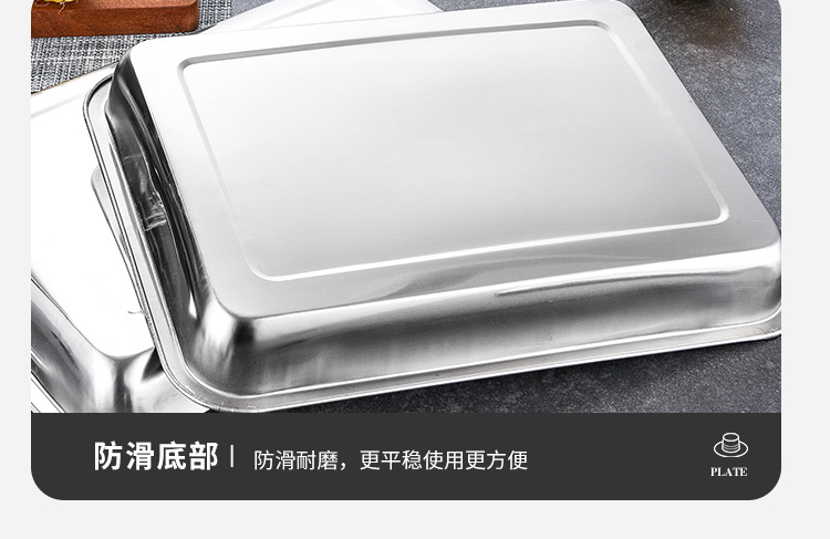 包装清单:1创发 不锈钢方盘 蒸柜蒸车托盘 点菜柜备菜盘 烧烤店烤鱼小龙虾盘方形