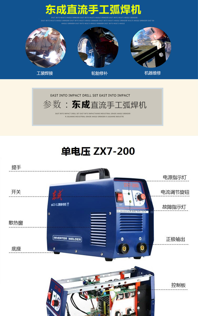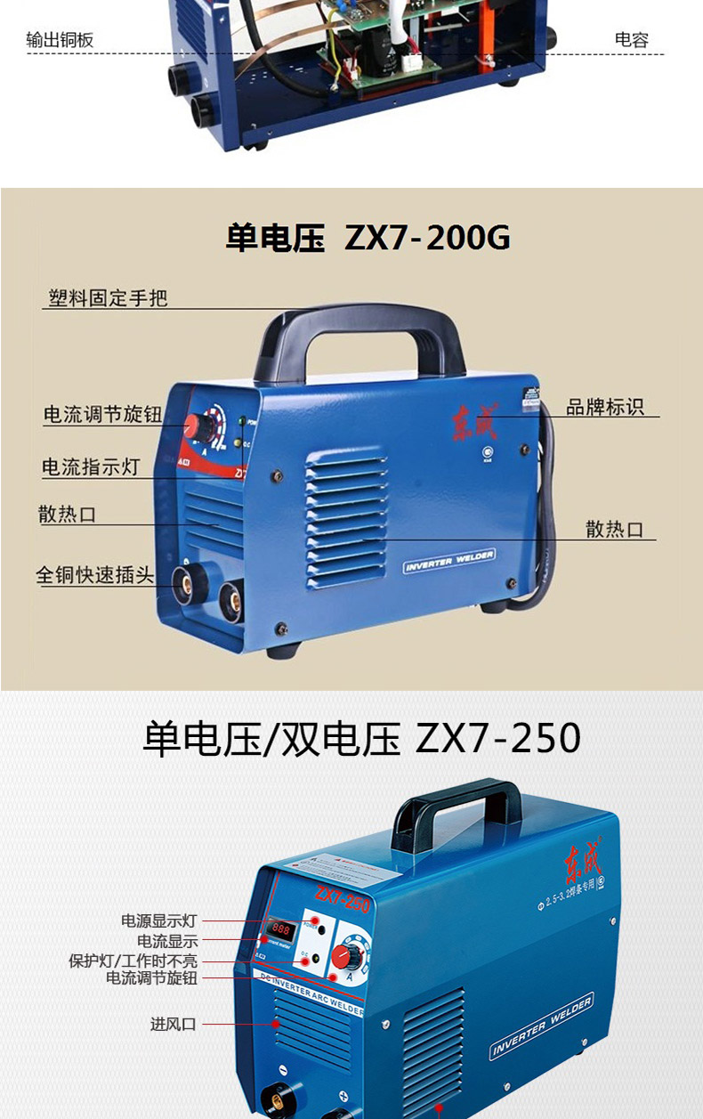 商品名称:东成 DongCheng 电焊机 便携式工业双电压电焊机 ZX7-500