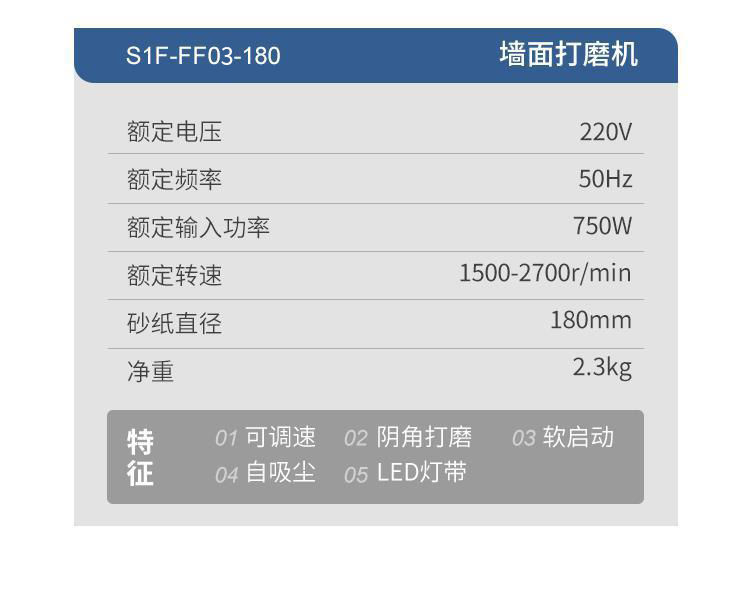 商品名称:东成 DongCheng 电动墙面打磨机 S1F-FF04-225