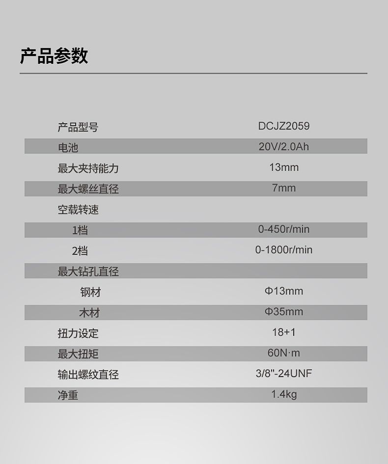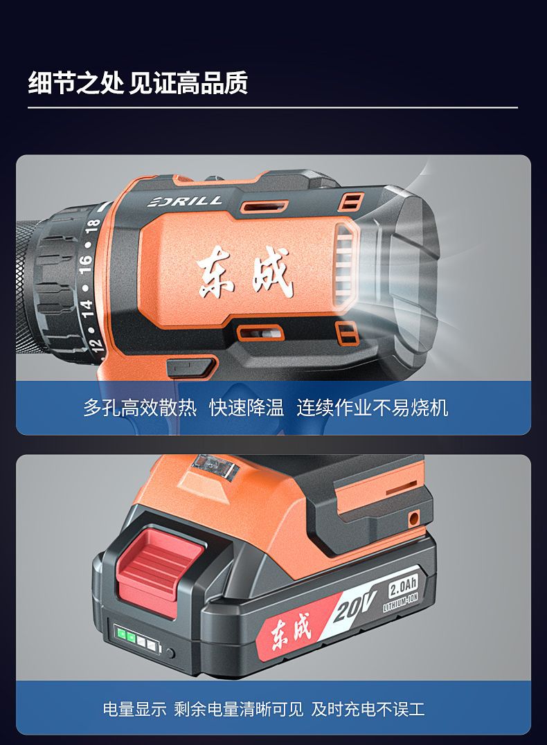 包装清单:1东成 DongCheng 无刷电钻 新款20V手电钻 多功能电钻