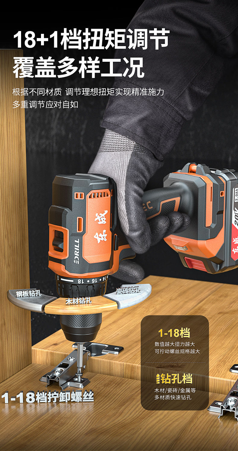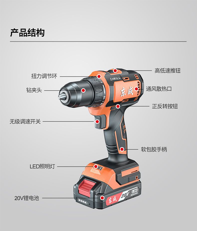 商品名称:东成 DongCheng 无刷电钻 新款20V手电钻 多功能电钻