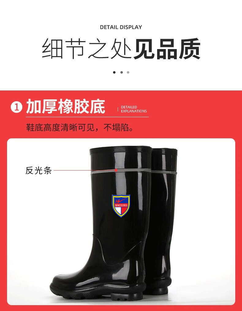包装清单:1合恒工品 反光条加厚高筒雨靴 反光条雨鞋 三防靴 38cm