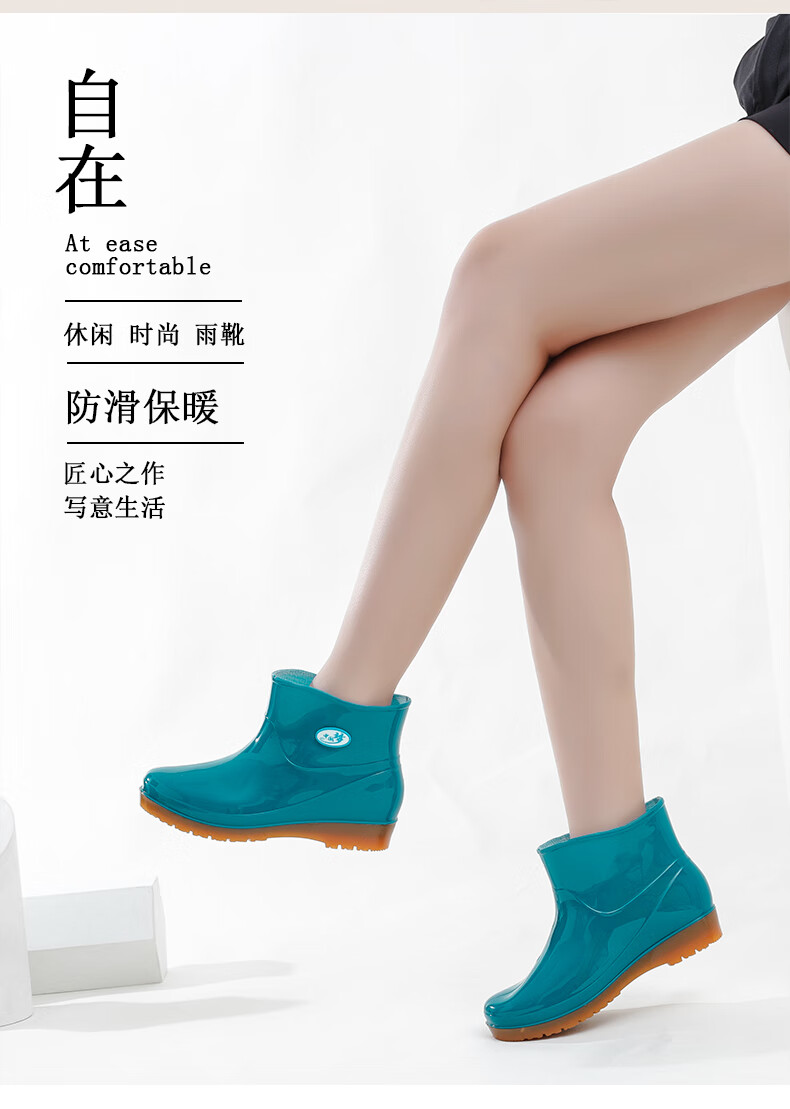包装清单:1合恒工品 女士低筒橡胶雨鞋 低筒女士雨鞋18cm 低筒女靴墨绿色