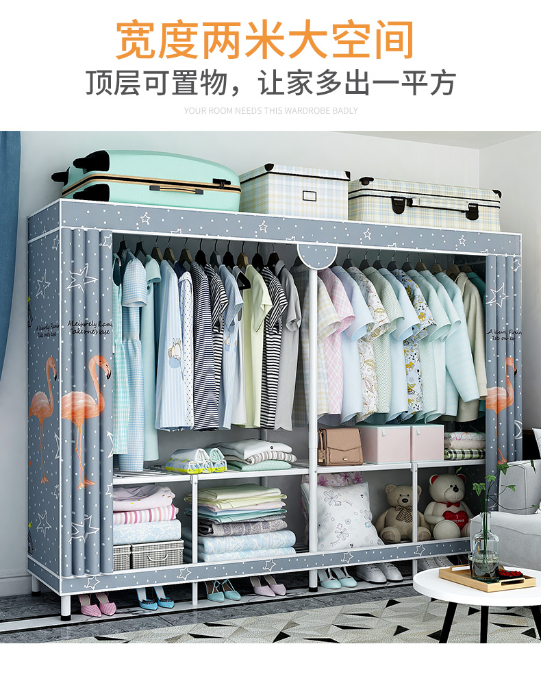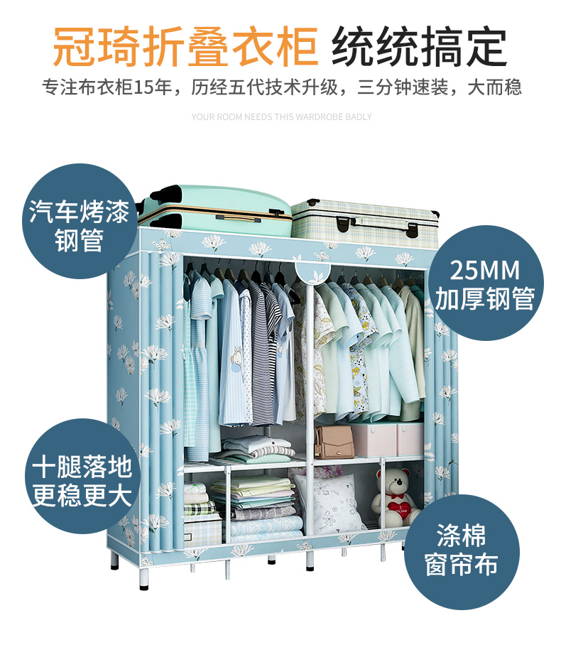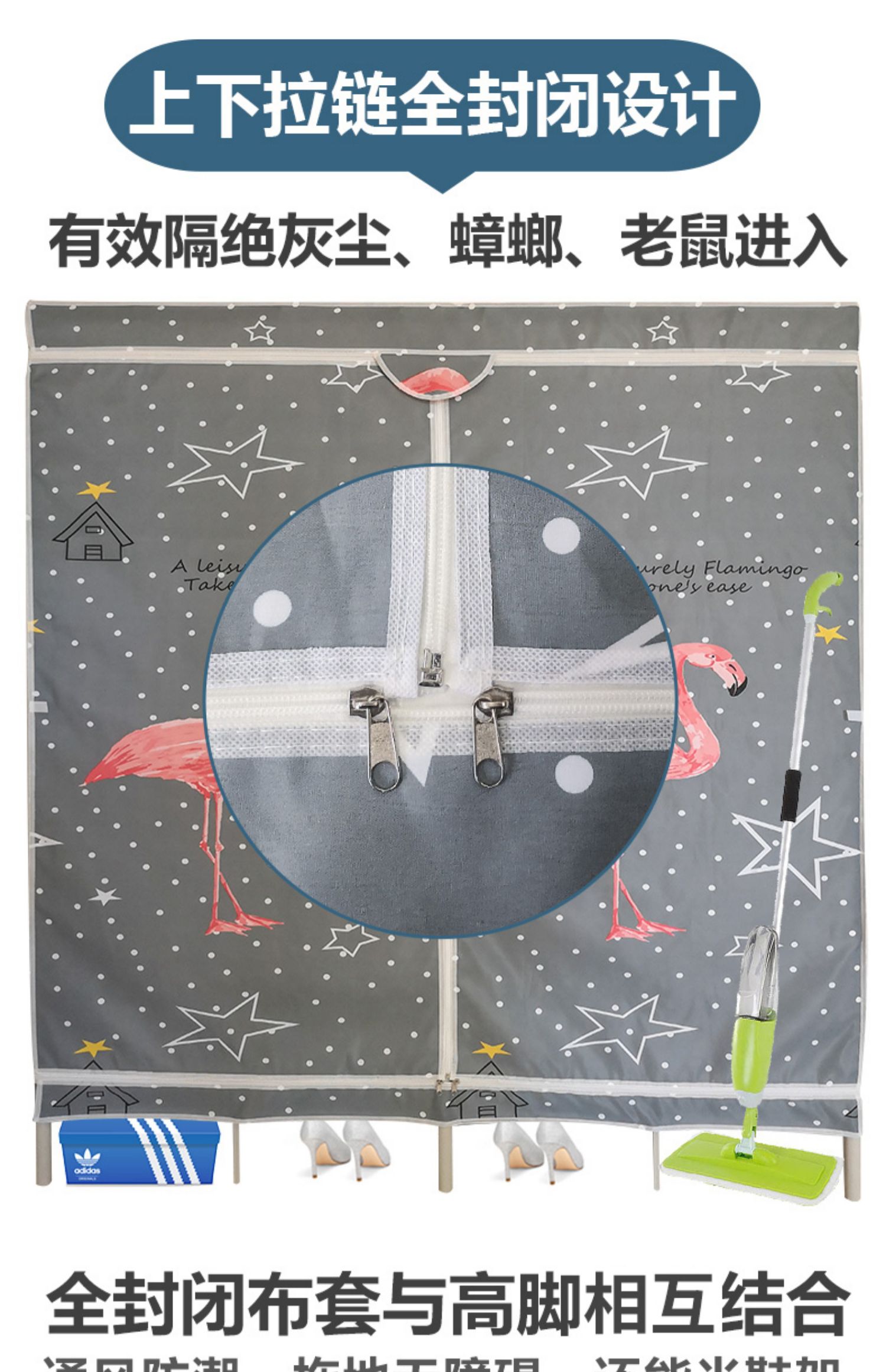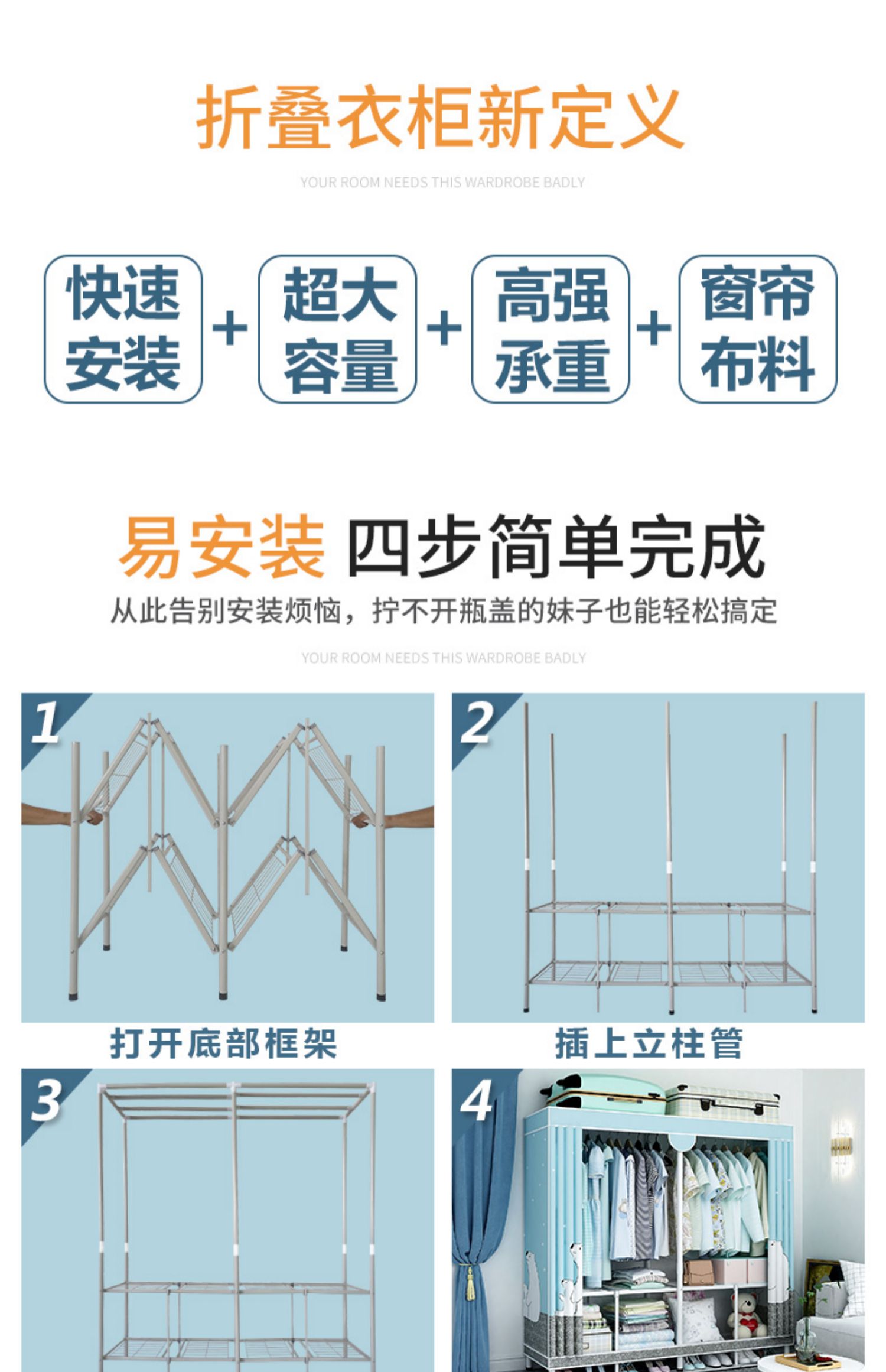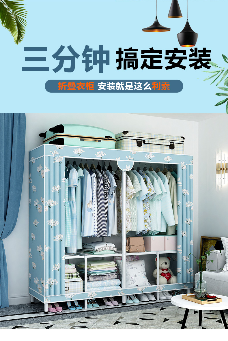 包装清单:1加依衣柜简易布衣柜 折叠免安装全密封钢管加固布艺出租屋用 挂衣橱