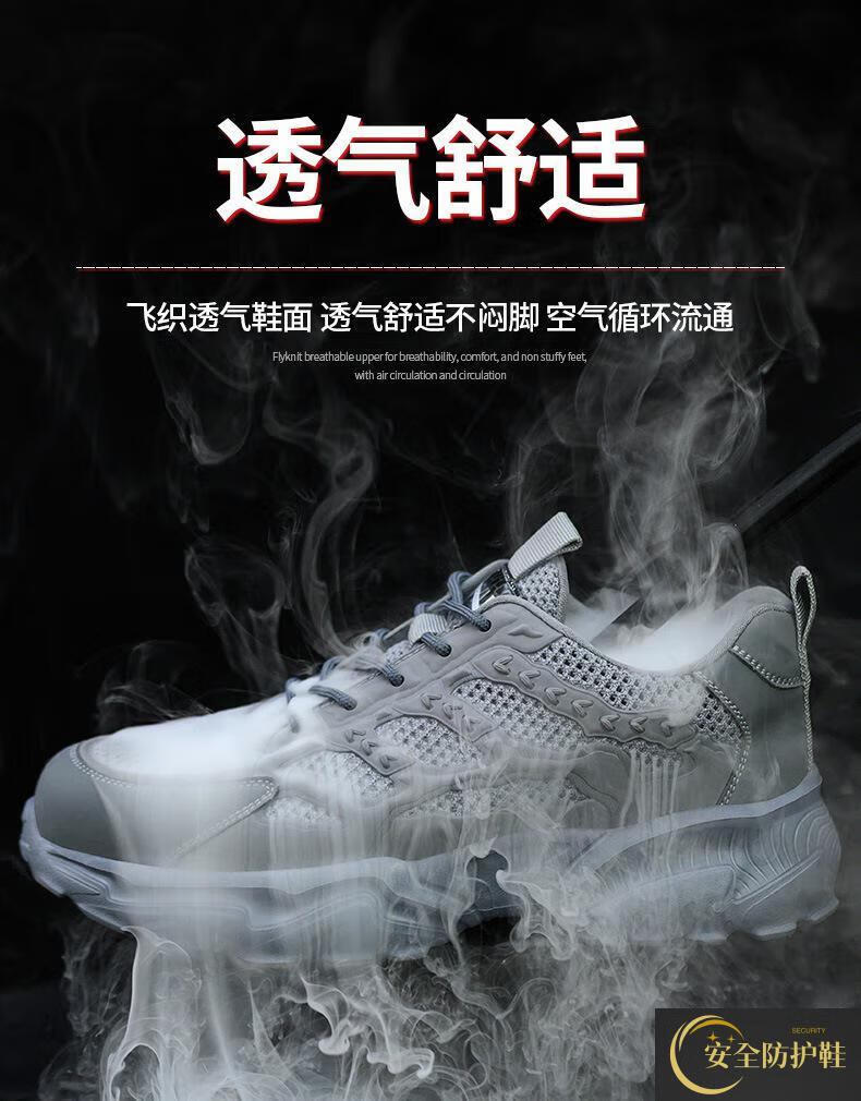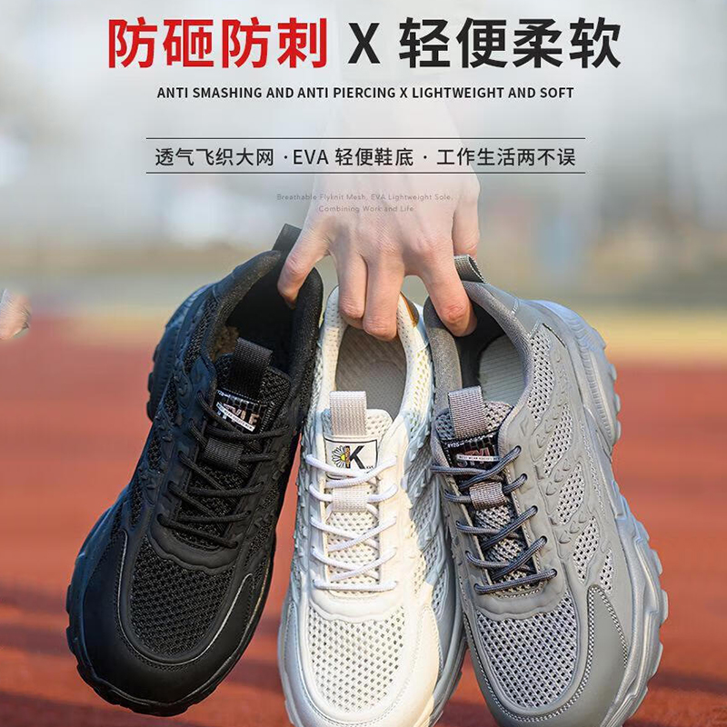 包装清单:1防砸防穿刺绝缘6KV劳保鞋 913 38-45 黑白灰 塑料头+凯夫拉中底 飞织TPU+EVA底