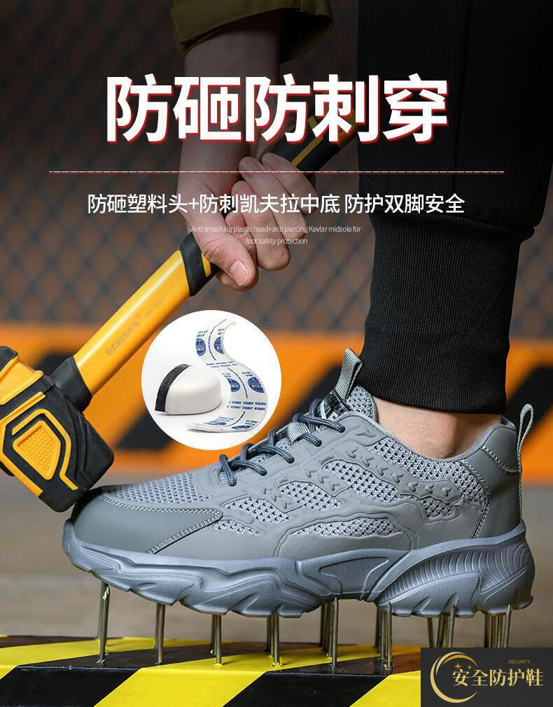 商品名称:防砸防穿刺绝缘6KV劳保鞋 913 38-45 黑白灰 塑料头+凯夫拉中底 飞织TPU+EVA底