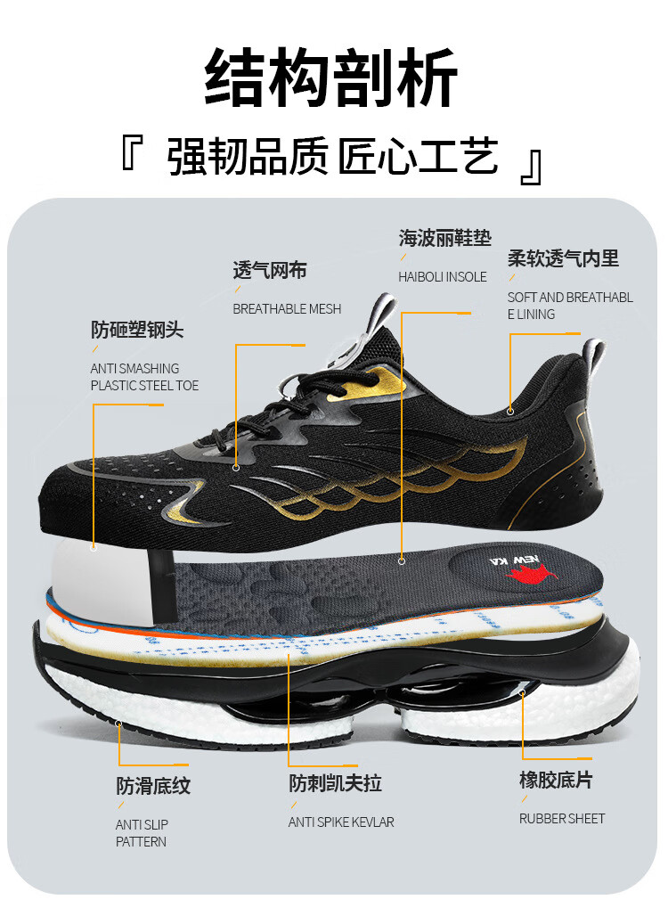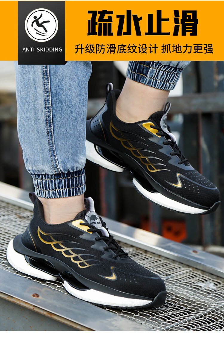 商品名称:牛卡 防砸防穿刺绝缘6KV劳保鞋 NK27 36-46码 黑色 塑料头+凯夫拉中底 透气网面+爆米花底