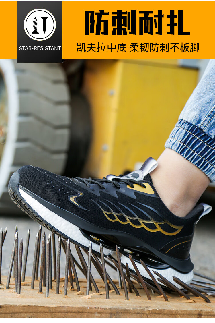 包装清单:1牛卡 防砸防穿刺绝缘6KV劳保鞋 NK27 36-46码 黑色 塑料头+凯夫拉中底 透气网面+爆米花底