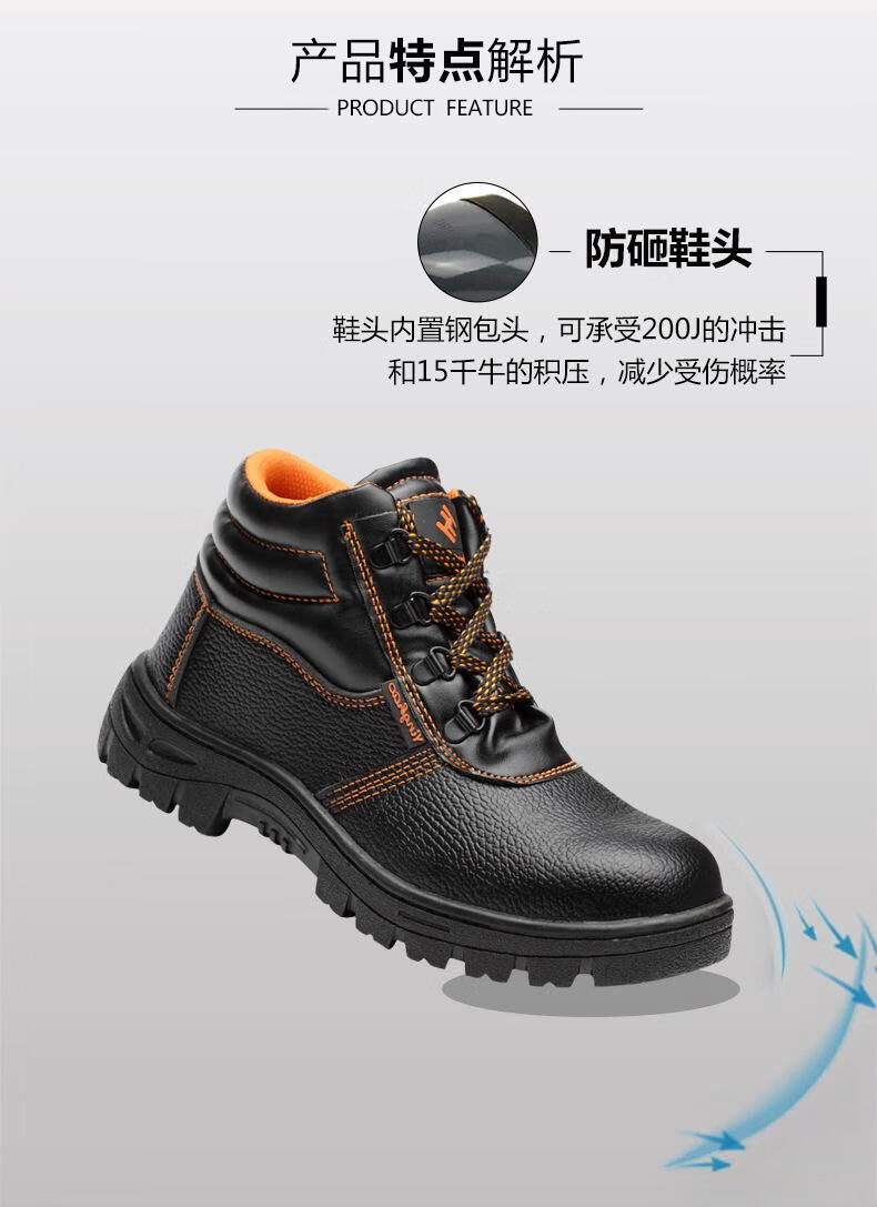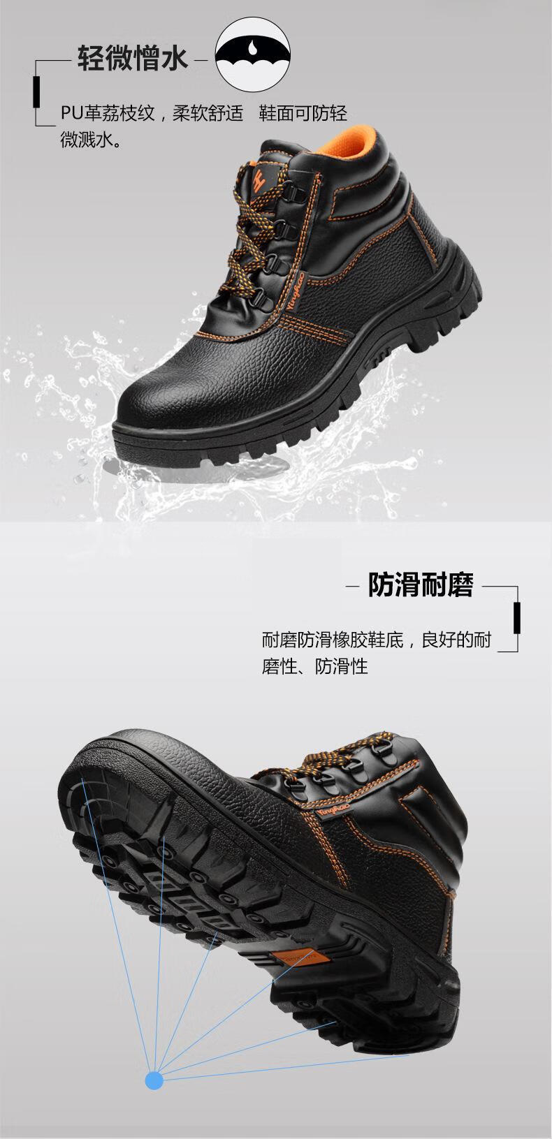 包装清单:1英豪 防砸防穿刺劳保鞋 G210 35-47码 黑色 铁头+铁底 PU革+橡胶底