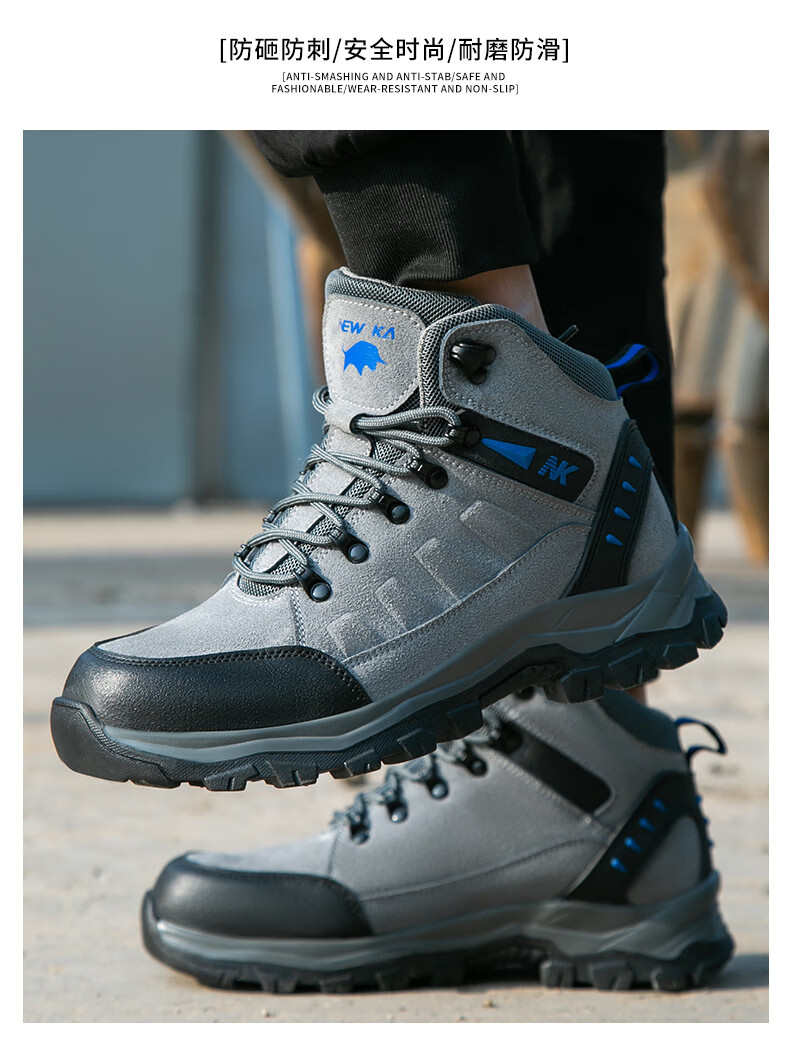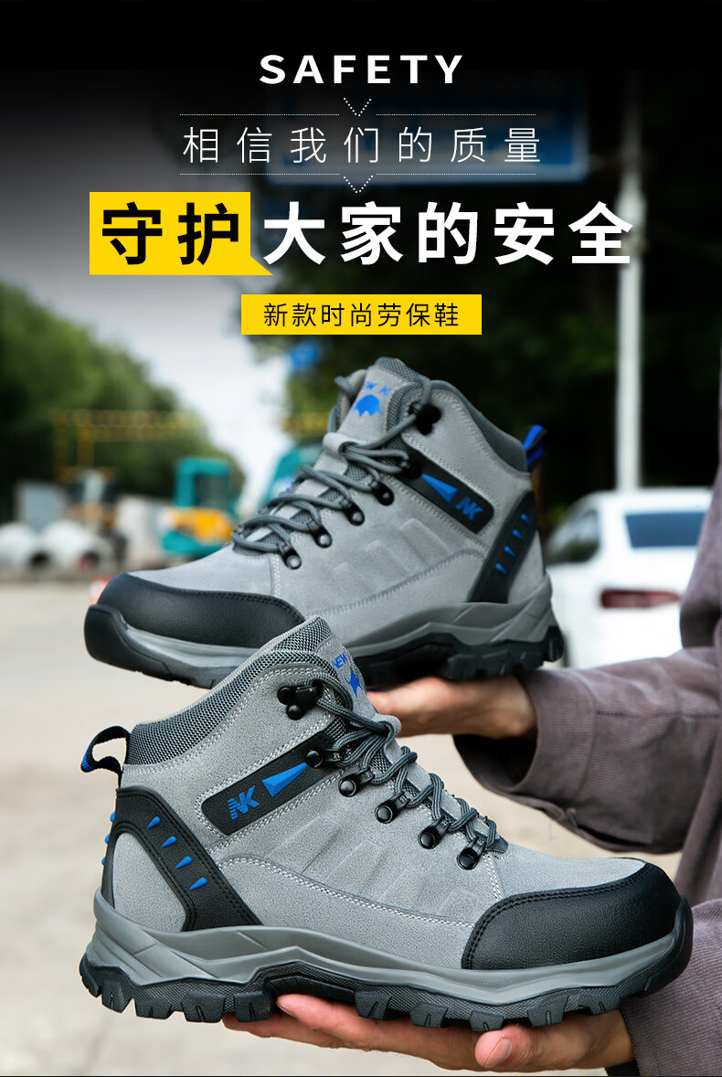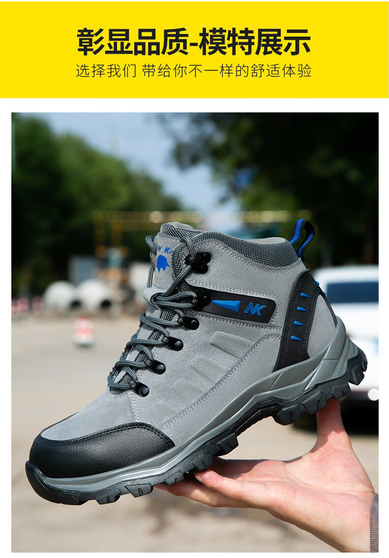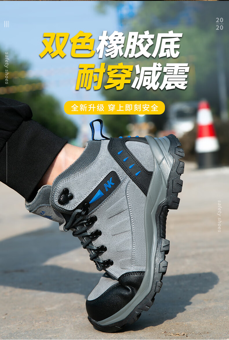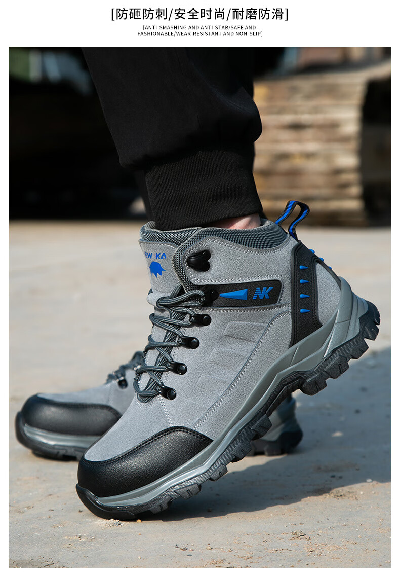 包装清单:1牛卡 防砸防穿刺劳保鞋 NK2333 36-46 灰色 欧标钢头+凯夫拉中底 再生反绒皮+双色橡胶底