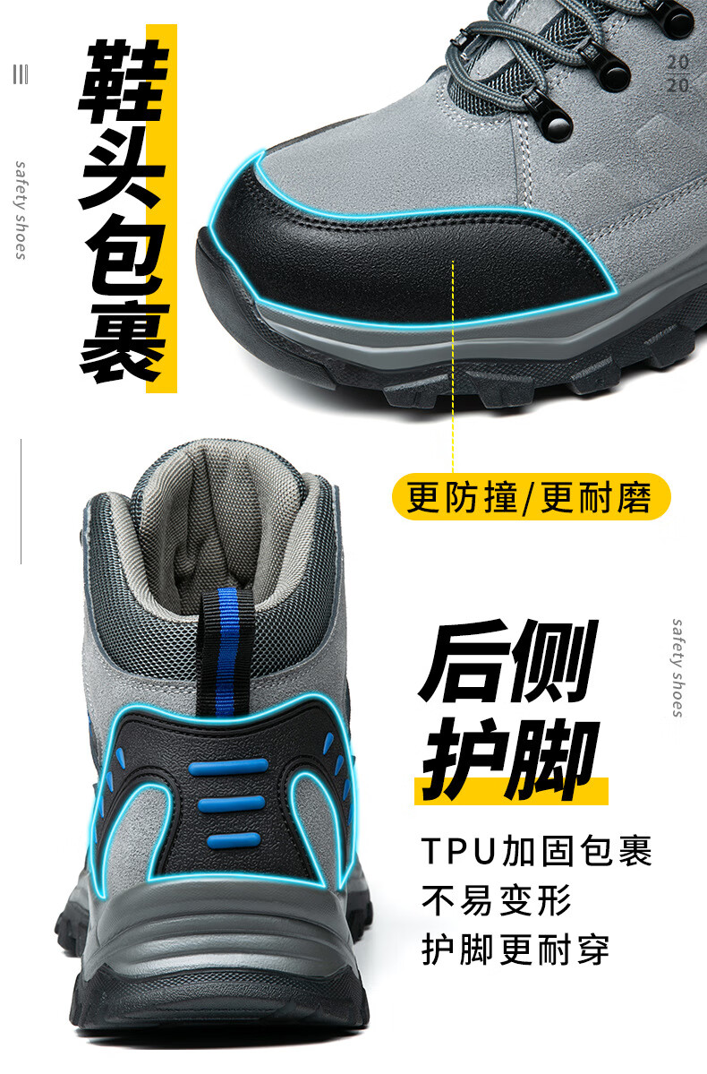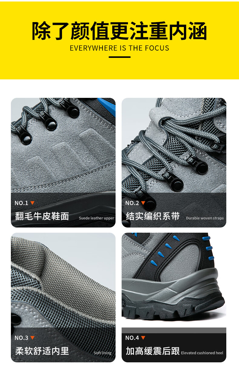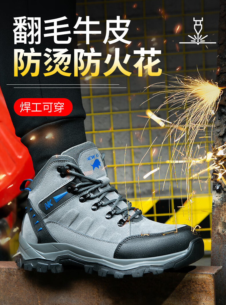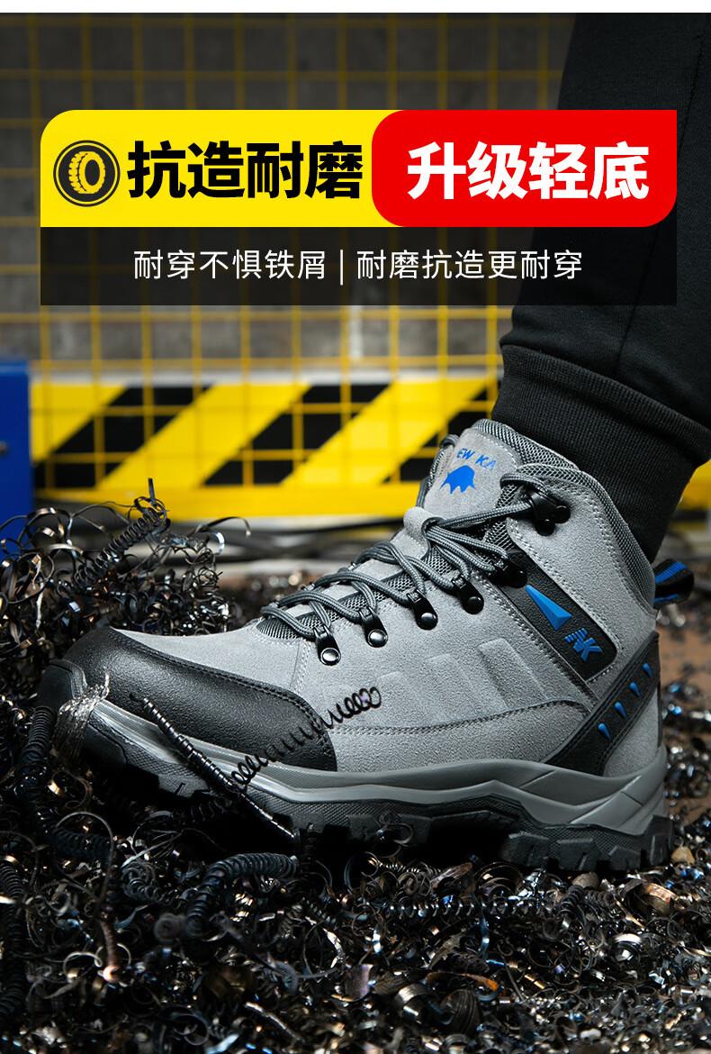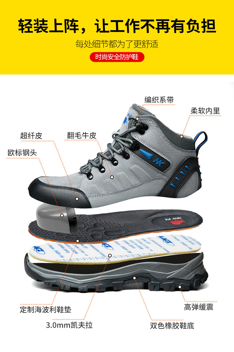 包装清单:1牛卡 防砸防穿刺劳保鞋 NK2333 36-46 灰色 欧标钢头+凯夫拉中底 再生反绒皮+双色橡胶底