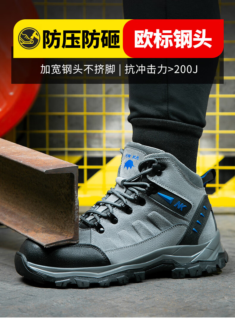 牛卡 防砸防穿刺劳保鞋 NK2333 36-46 灰色 欧标钢头+凯夫拉中底 再生反绒皮+双色橡胶底
