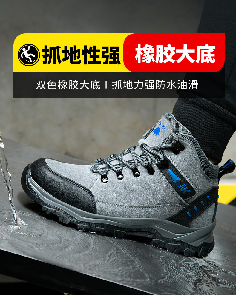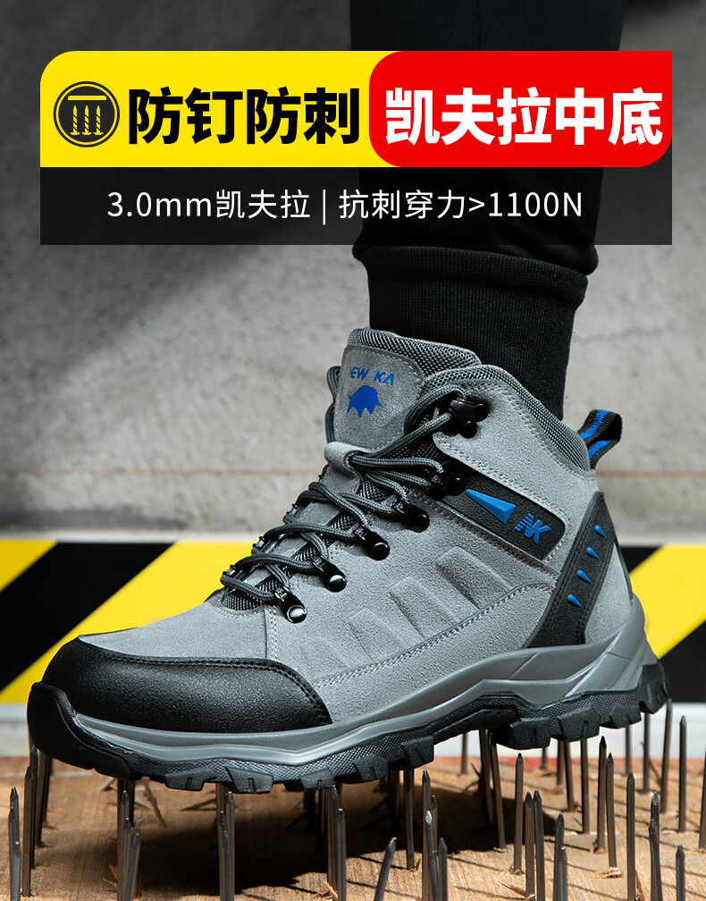 商品名称:牛卡 防砸防穿刺劳保鞋 NK2333 36-46 灰色 欧标钢头+凯夫拉中底 再生反绒皮+双色橡胶底