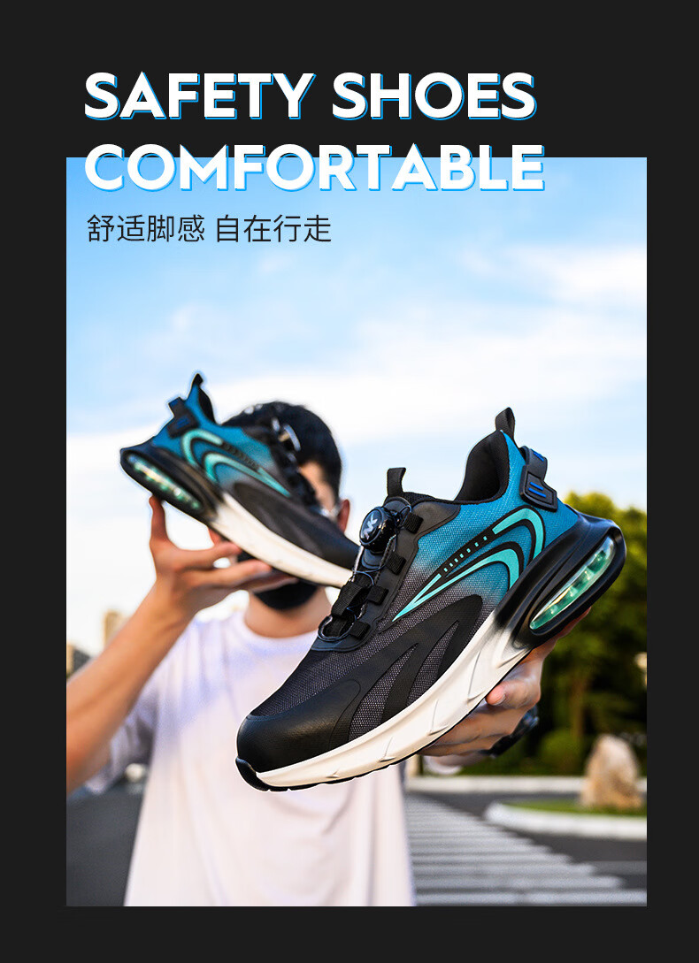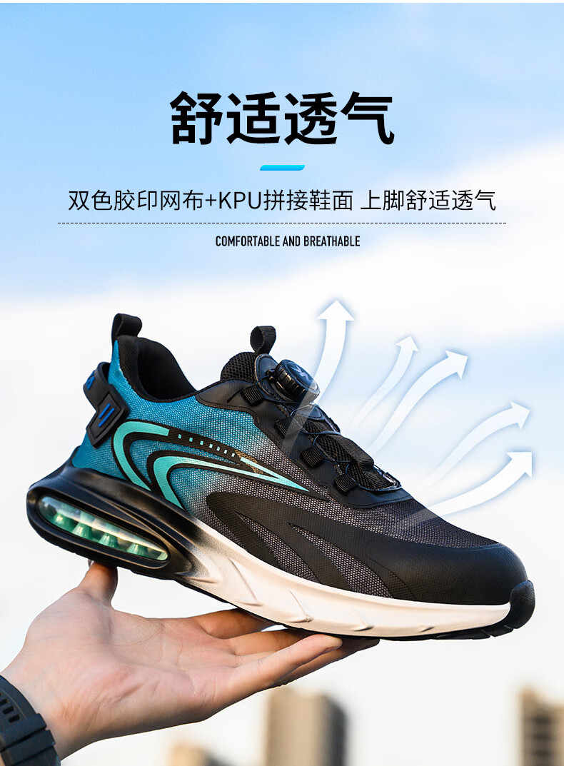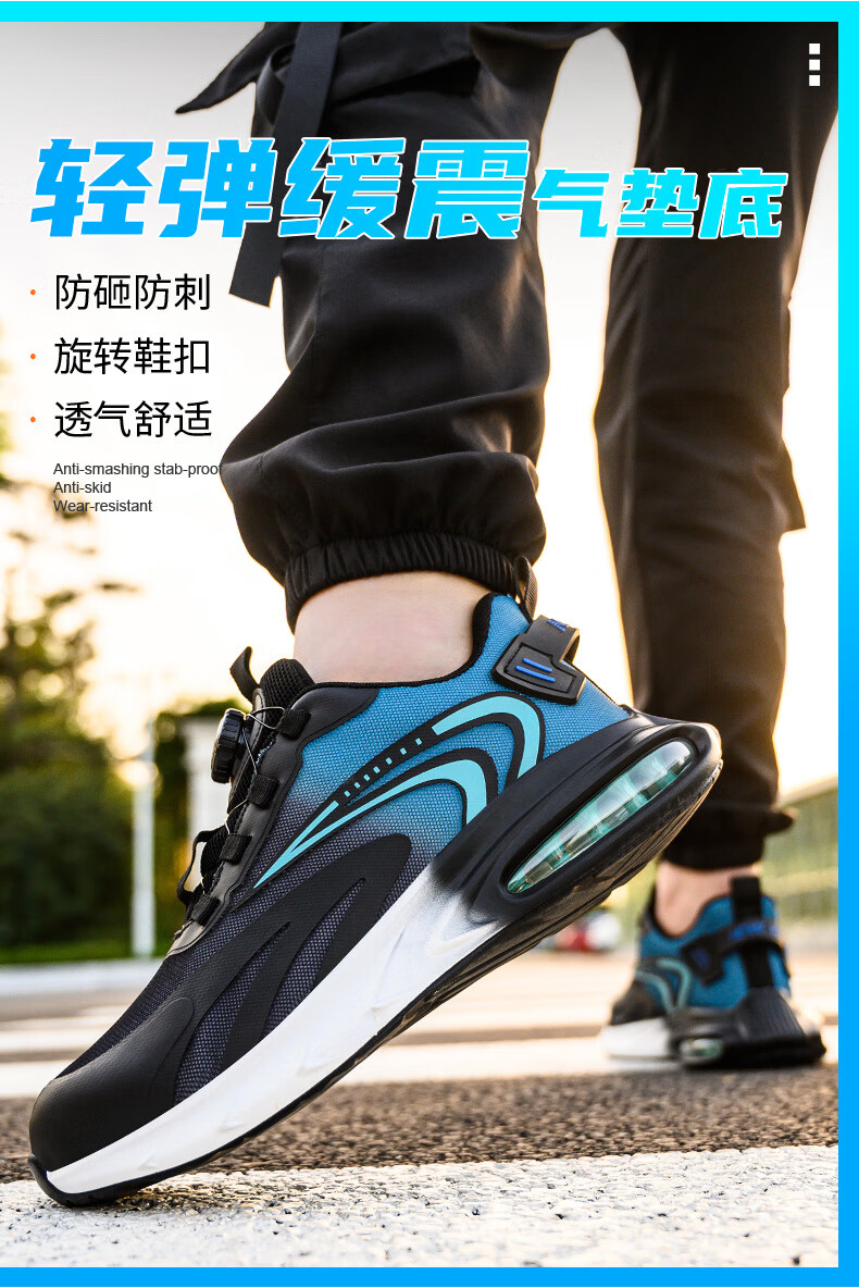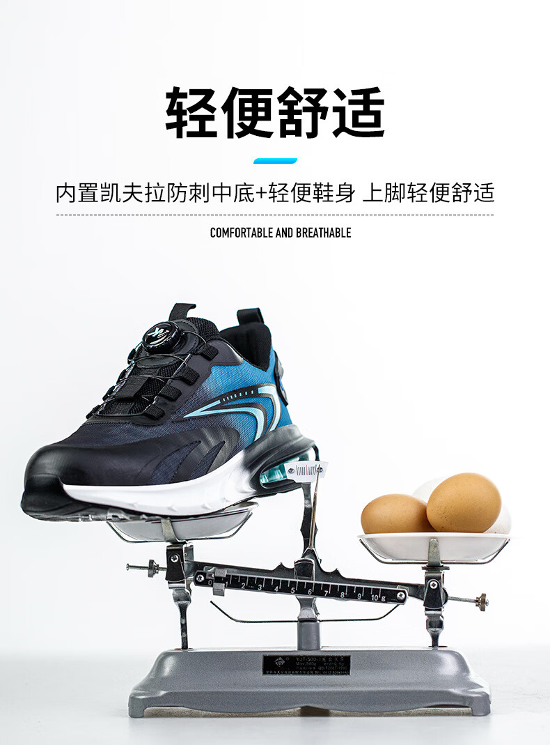 包装清单:1牛卡 防砸防穿刺劳保鞋 NK28 36-47 蓝黑色欧标钢头+凯夫拉中底 三明治网布+气垫底