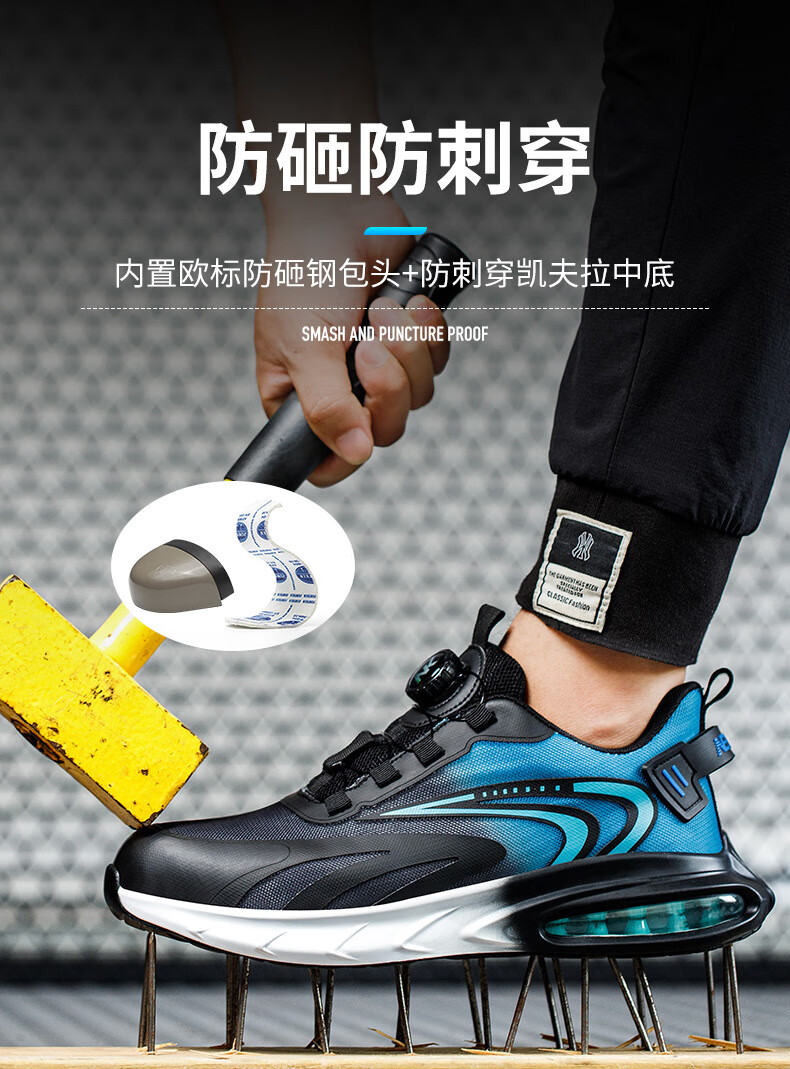 牛卡 防砸防穿刺劳保鞋 NK28 36-47 蓝黑色欧标钢头+凯夫拉中底 三明治网布+气垫底