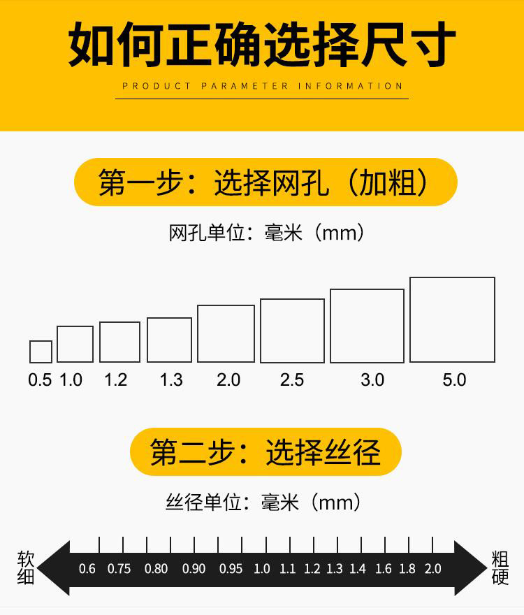 商品规格:0.5mm丝 孔径2.1cm 0.9m*50m