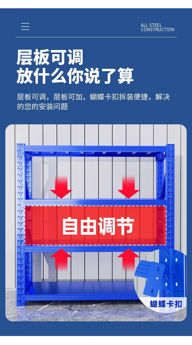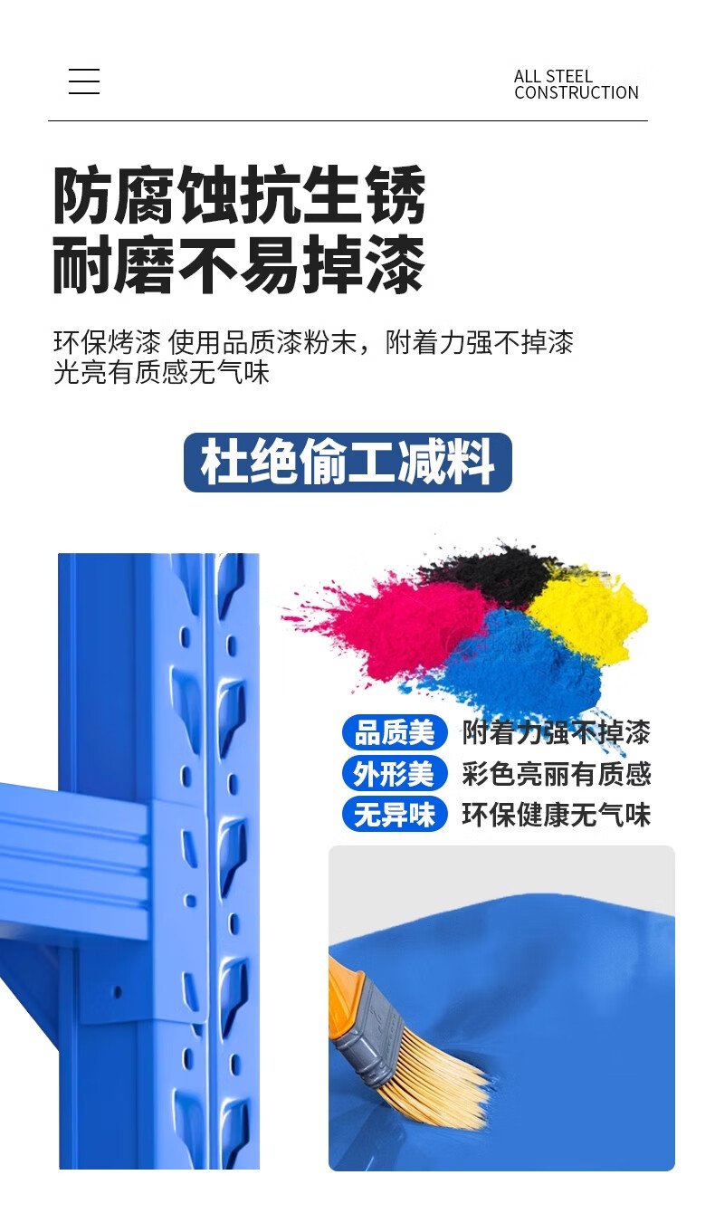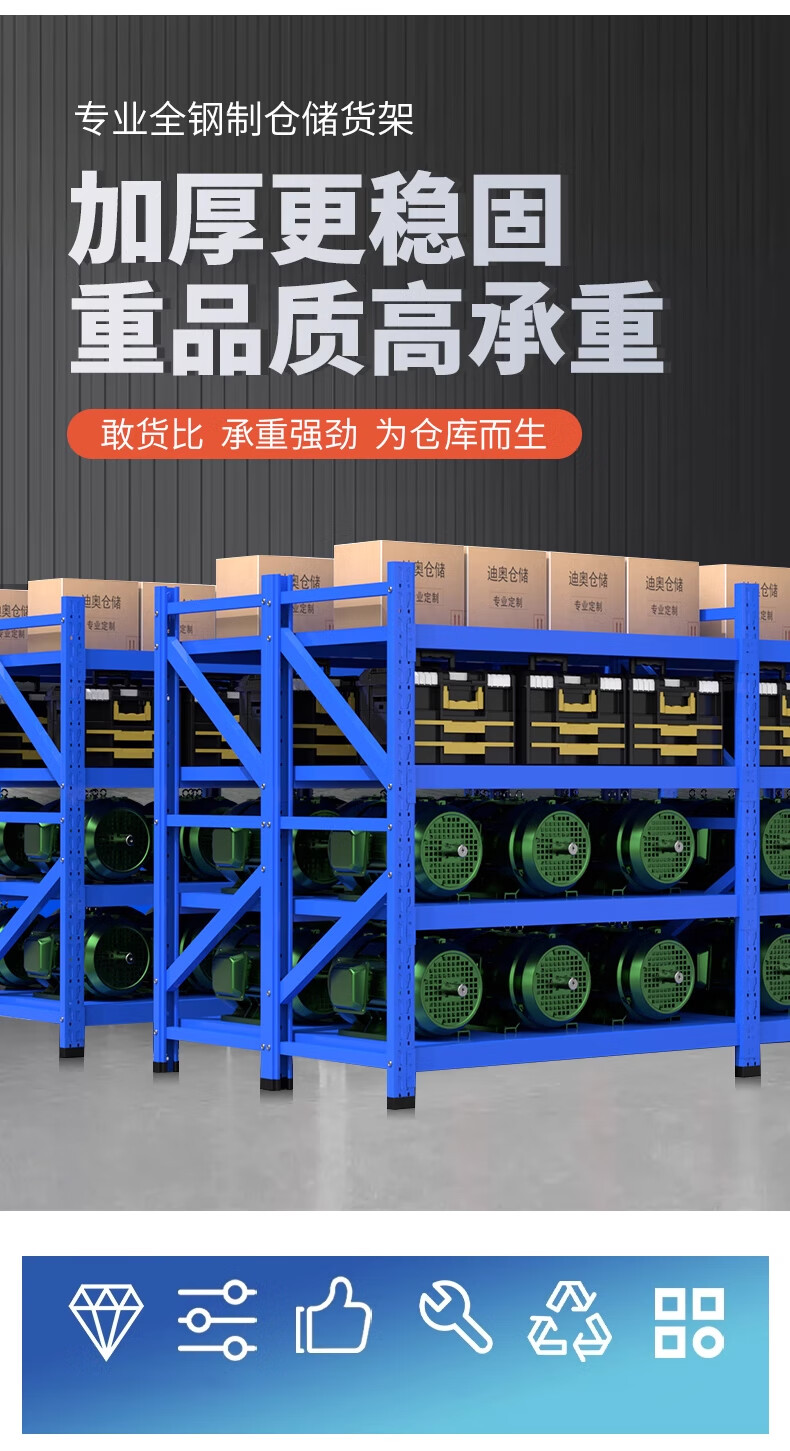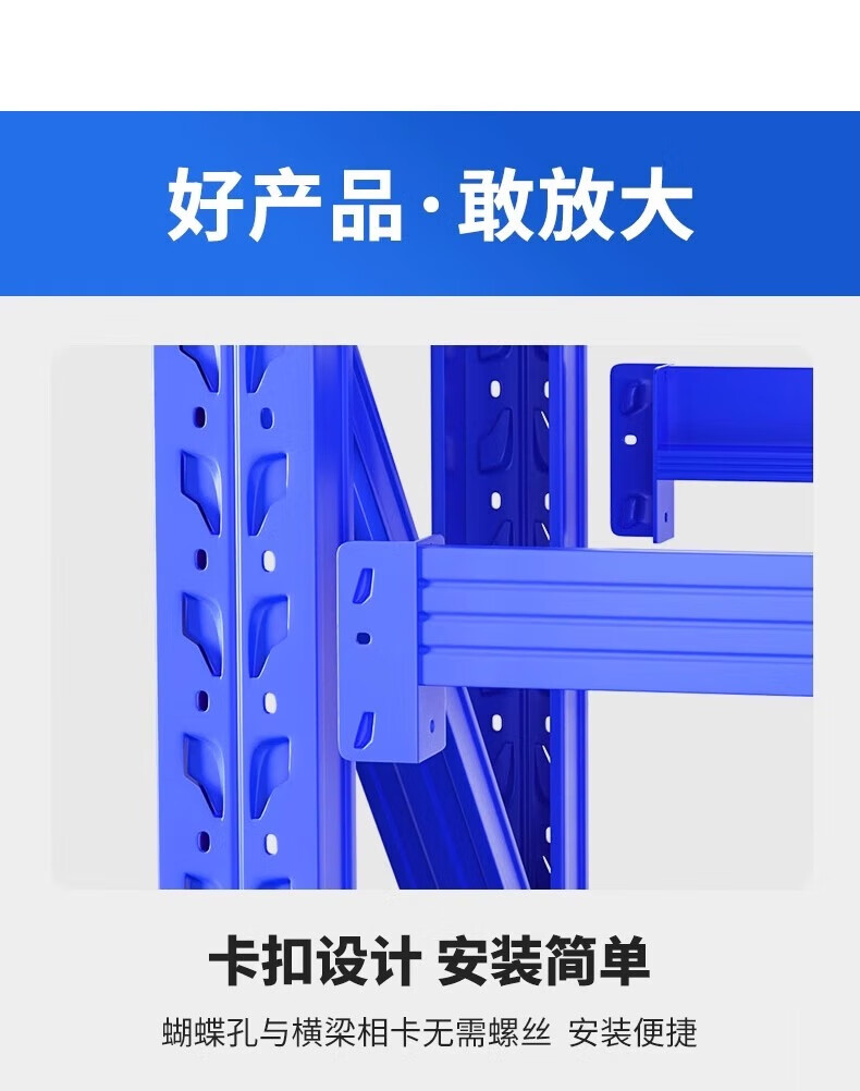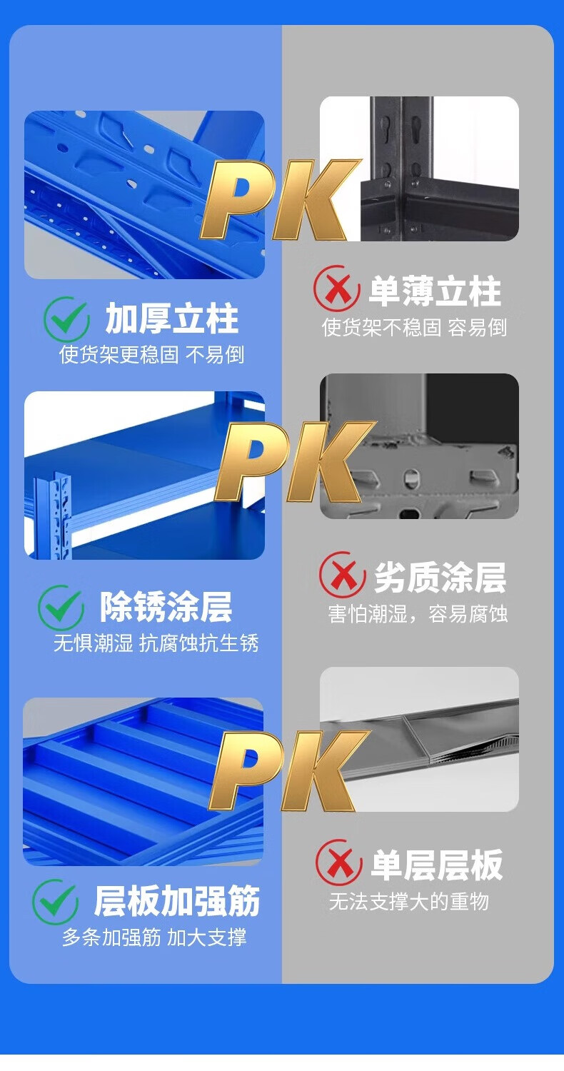 包装清单:1合恒工品 层板货架 2000*600*1500*3层 承重300kg 立柱80*40*0.8mm横梁60*40*0.8mm层板 0.4mm