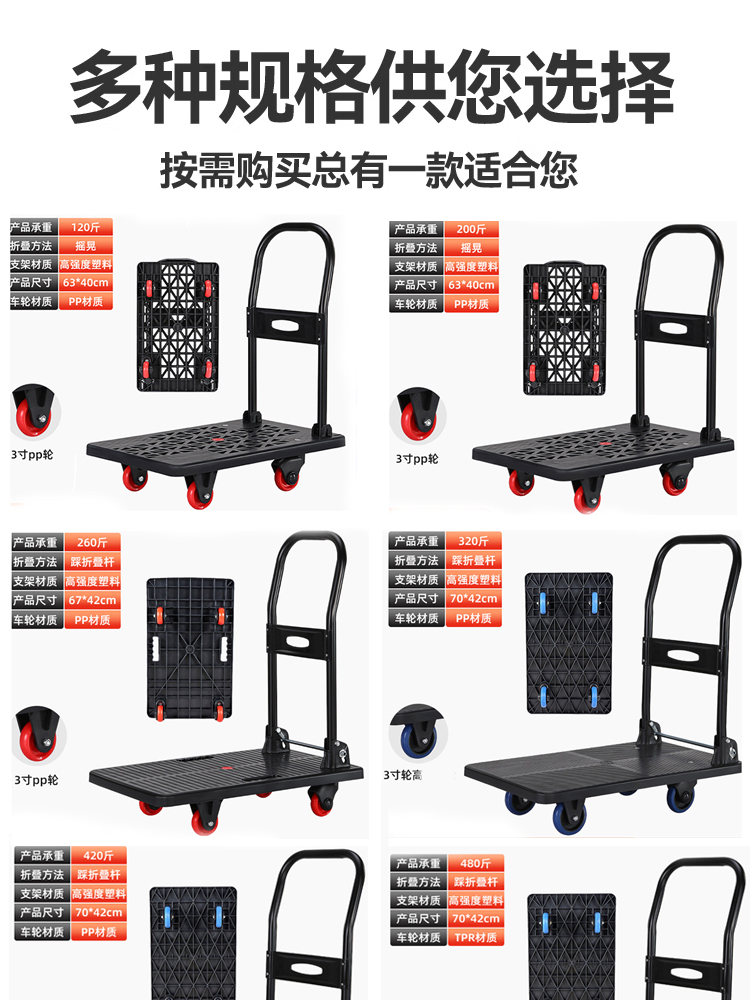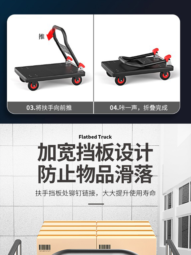 包装清单:1辆雷璟平板车 小推车折叠拉货搬运车