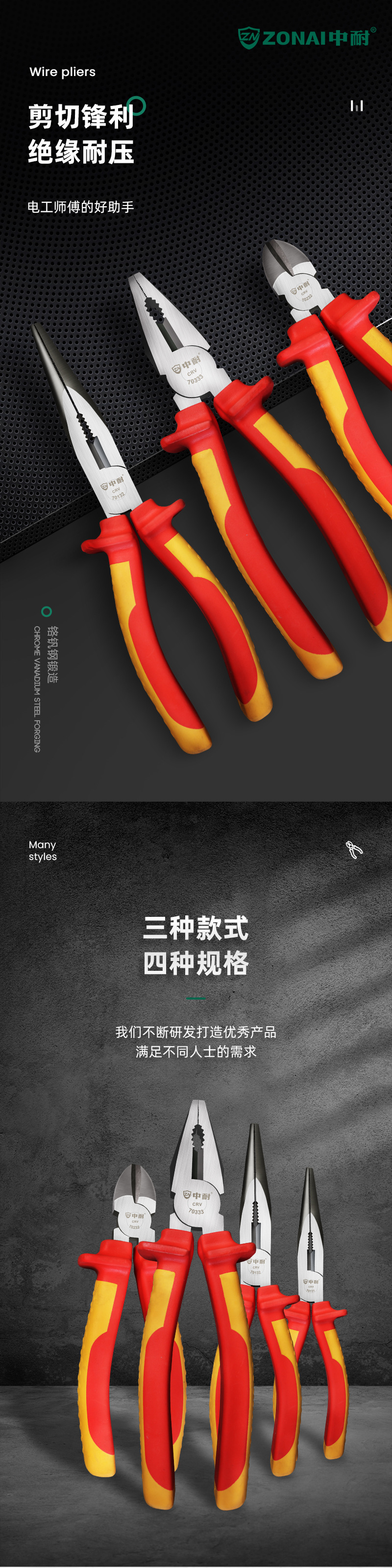 商品名称:英迈 高压绝缘电工钳 钢丝钳 尖嘴钳 斜嘴钳
