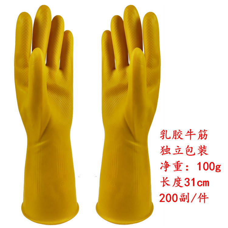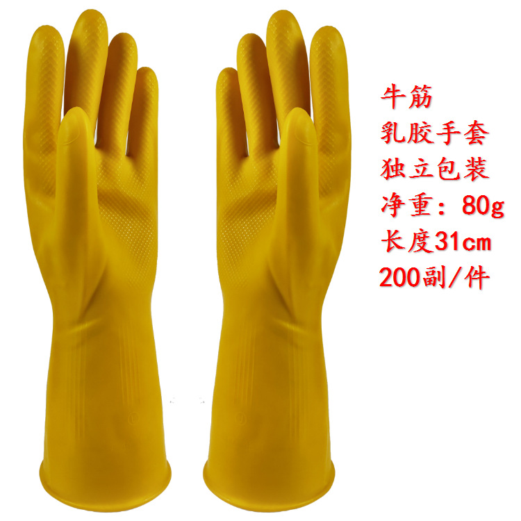 商品名称:合恒工品 单色乳胶手套橡胶手套 31cm 100g乳胶不加绒