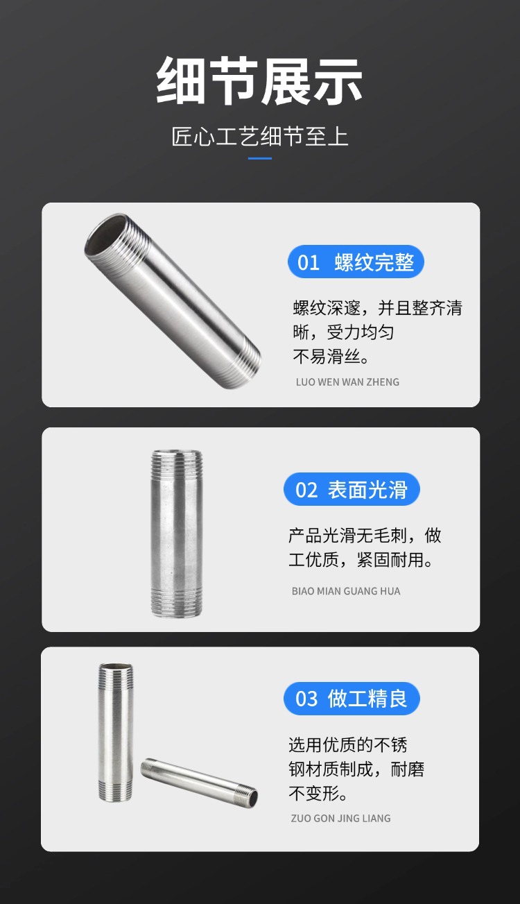包装清单:1合恒工品 HHGP 加长对丝 双头丝加长管外丝不锈钢双头