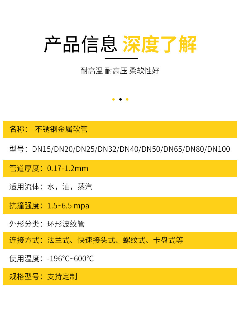 包装清单:1合恒工品 HHGP 不锈钢金属软管快速接头 不锈钢 1/2" L=50cm