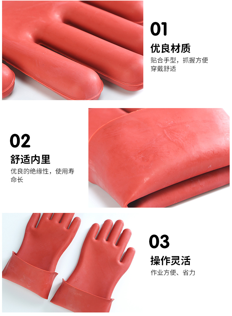 包装清单:1恒聚12KV橡胶绝缘手套 高压绝缘手套 橡胶导电作业工作手套