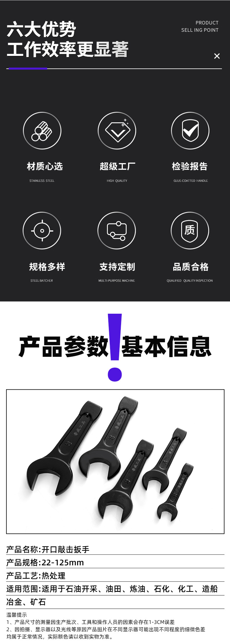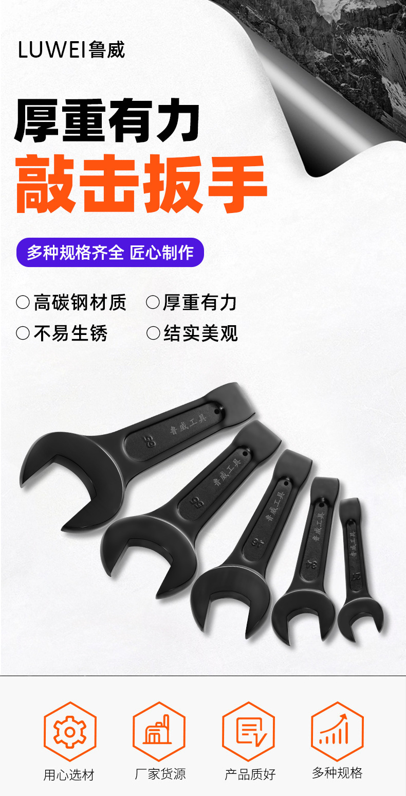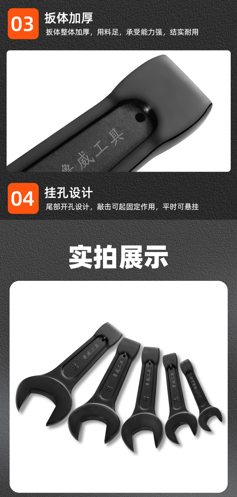 包装清单:1英迈 电泳45钢敲击呆扳手 重型加厚大扳手 敲击开口扳手