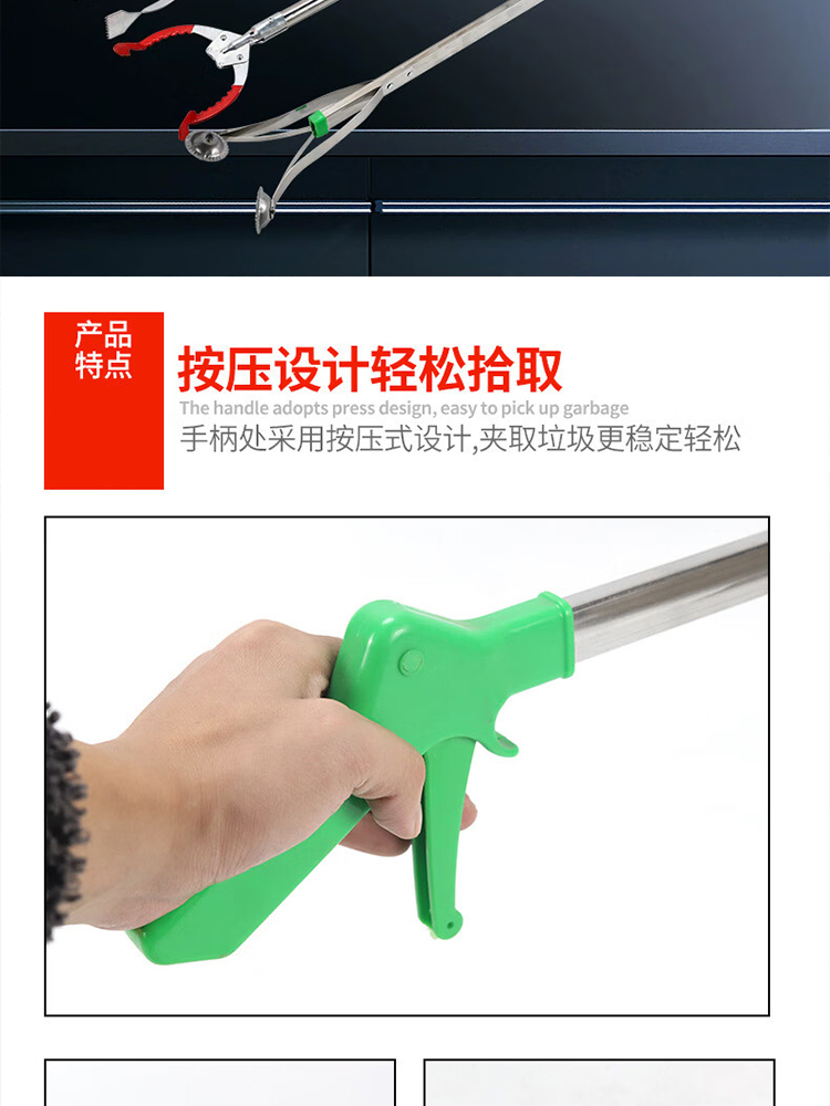 商品名称:雷璟 垃圾夹 拾物器防风环卫夹子长柄垃圾钳家卫生捡取物夹不锈钢