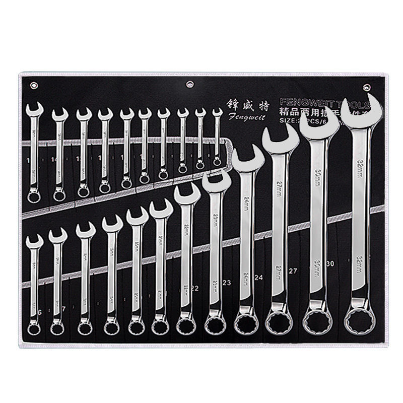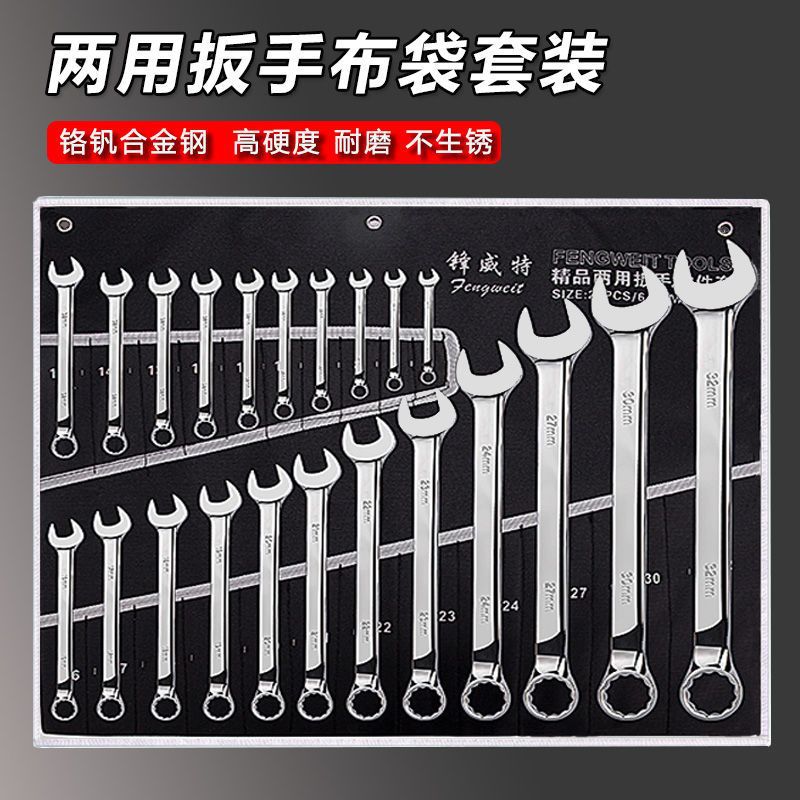 英迈 梅开两用扳手套装 梅花开口镜面 高硬防锈呆头扳子布 袋组套