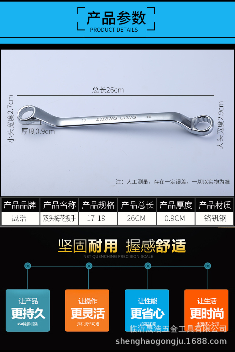 包装清单:1合恒工品两用棘轮扳手梅花内六角汽修机修工具镜面双头梅花扳手