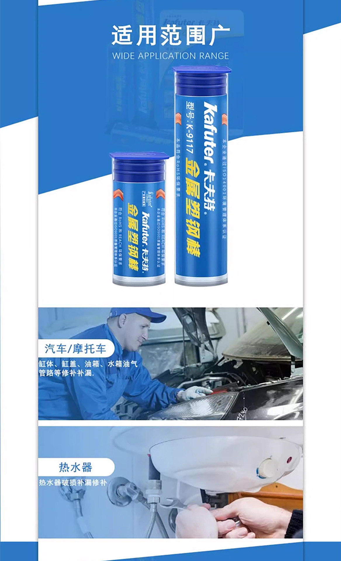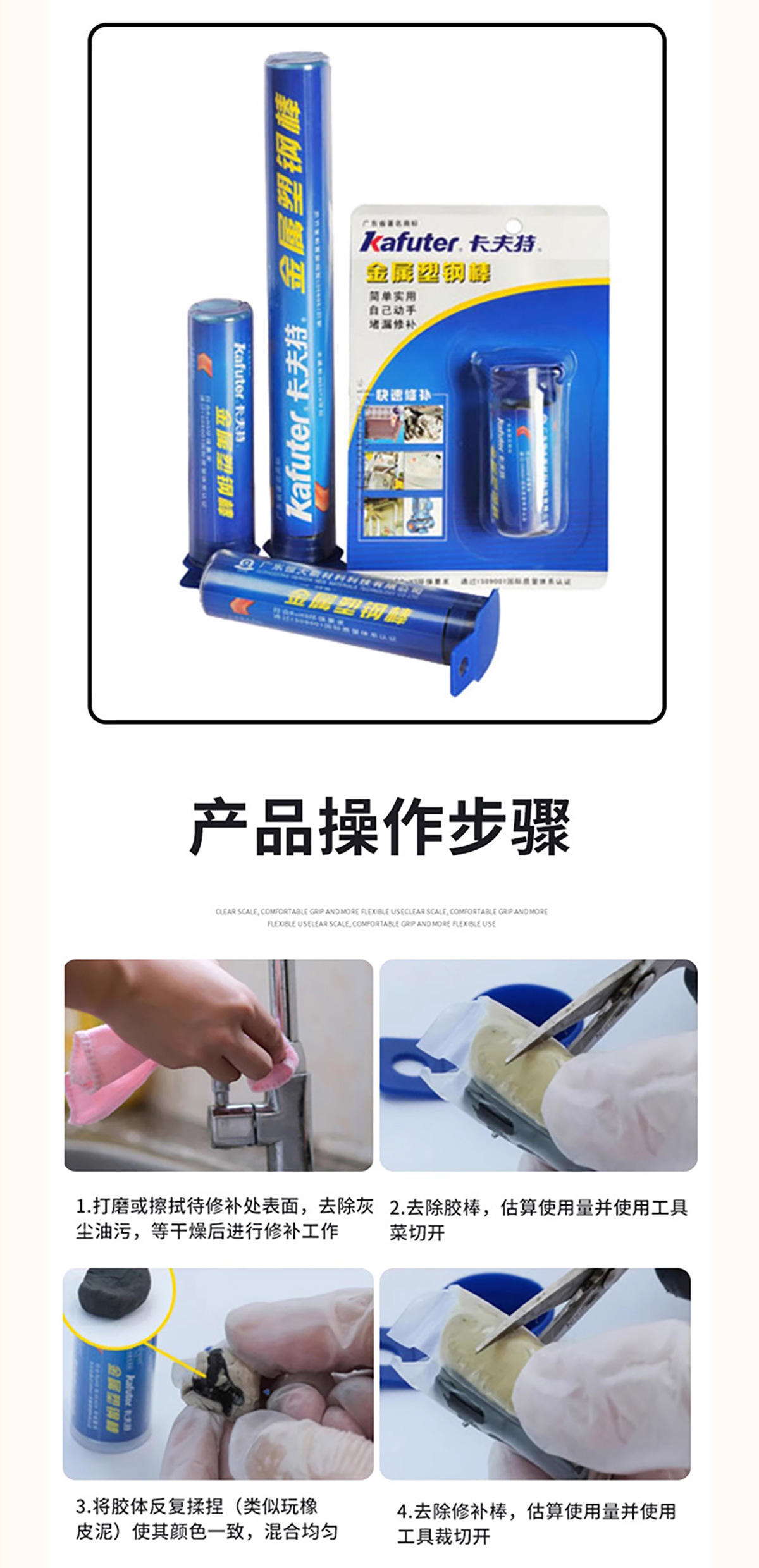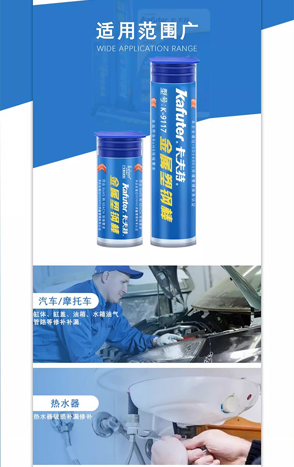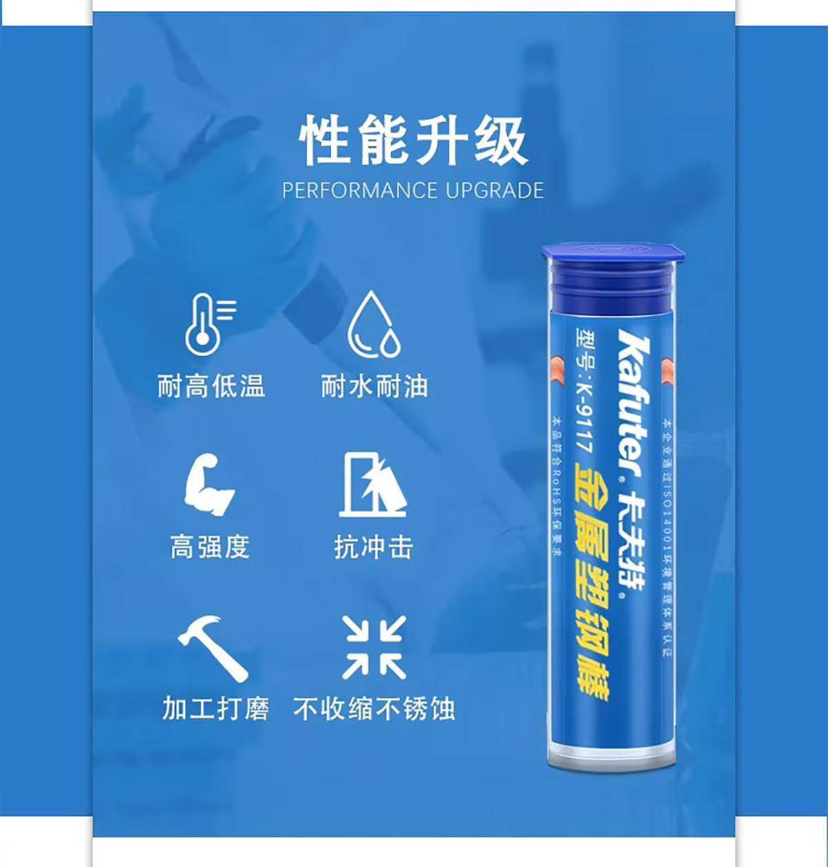 商品名称:卡夫特 金属塑钢棒 k-9117粘金属铁铝油箱暖气片快速黏合 紧急补漏胶
