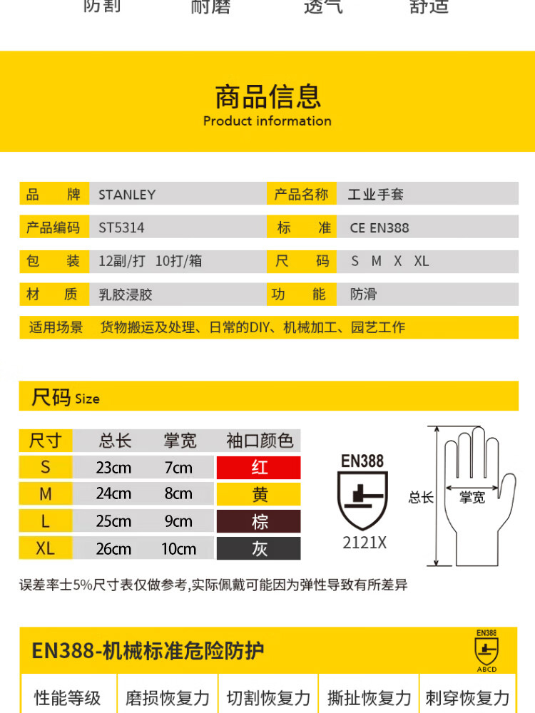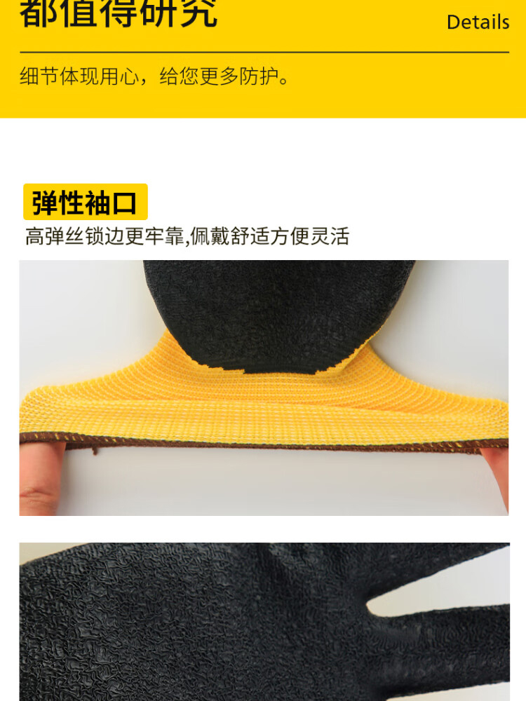 包装清单:1耐磨透气劳保手套 耐用防滑防护干活工作建筑工地乳胶橡胶胶皮