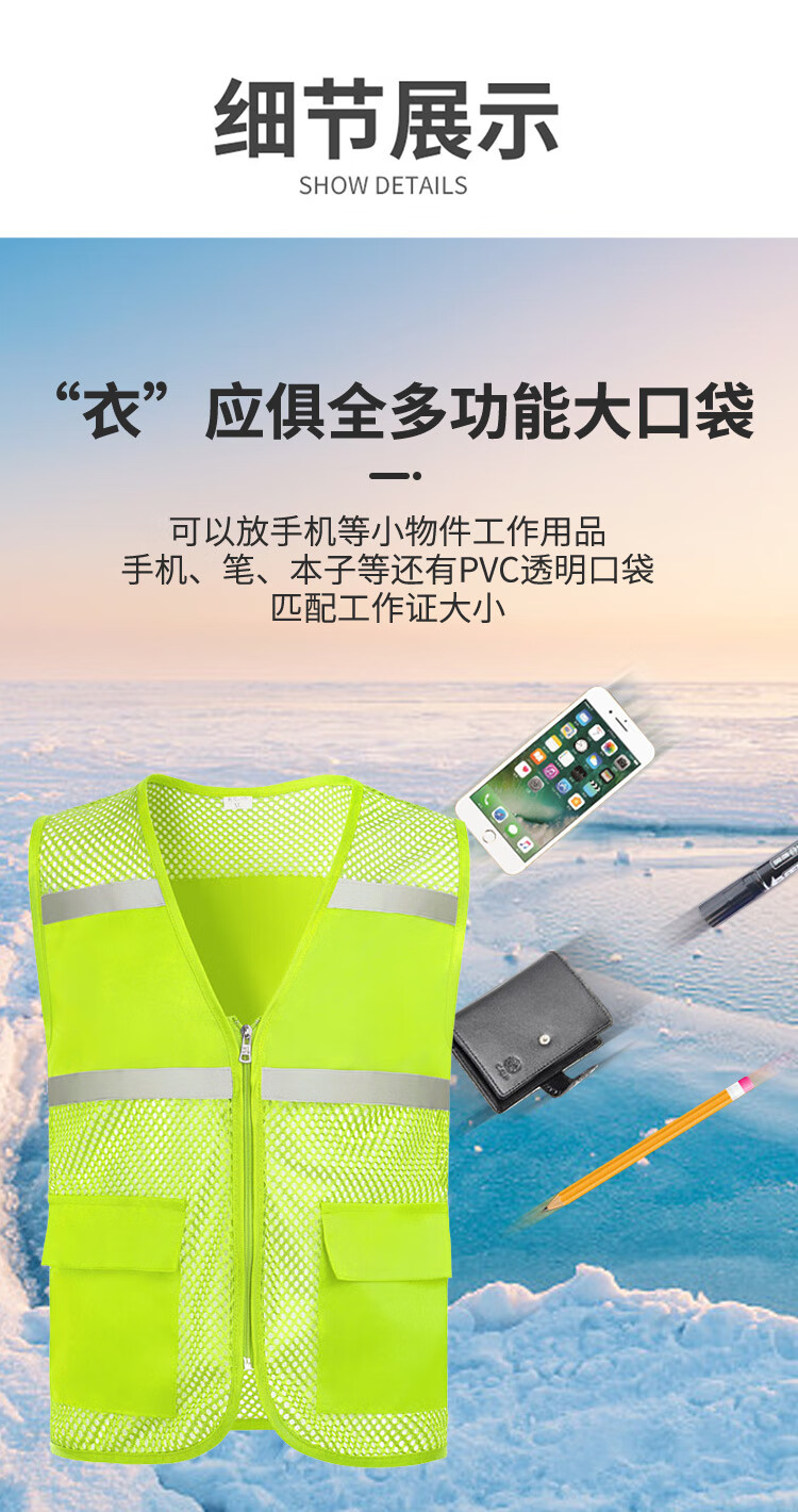 包装清单:1网格春夏工装透气工作反光马甲 反光条款网格反光背心M-XXXXL