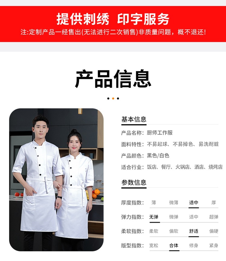 商品名称:厨师服 厨房酒店夏装 工作服七分袖厨师服 装糕点师傅厨师后厨工装