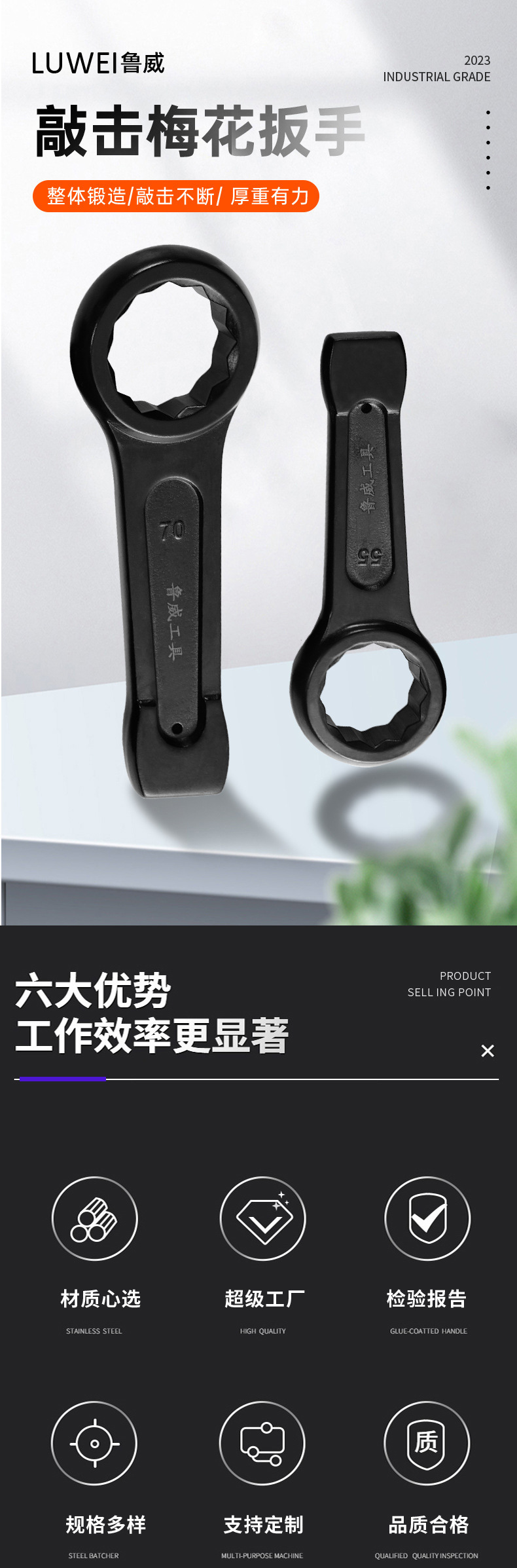 包装清单:1英迈 敲击呆扳手 重型坚固敲击梅花扳手 单头直柄敲击扳手工业级
