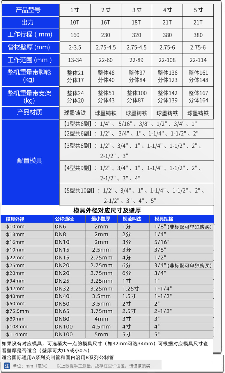 包装清单:1奔工 电动液压弯管机 DWG-4 1/2"-4" 配套模具1/2"、3/4"、1"、1 1/4"、1 1/2"、2"、2 1/2"、3"、4"